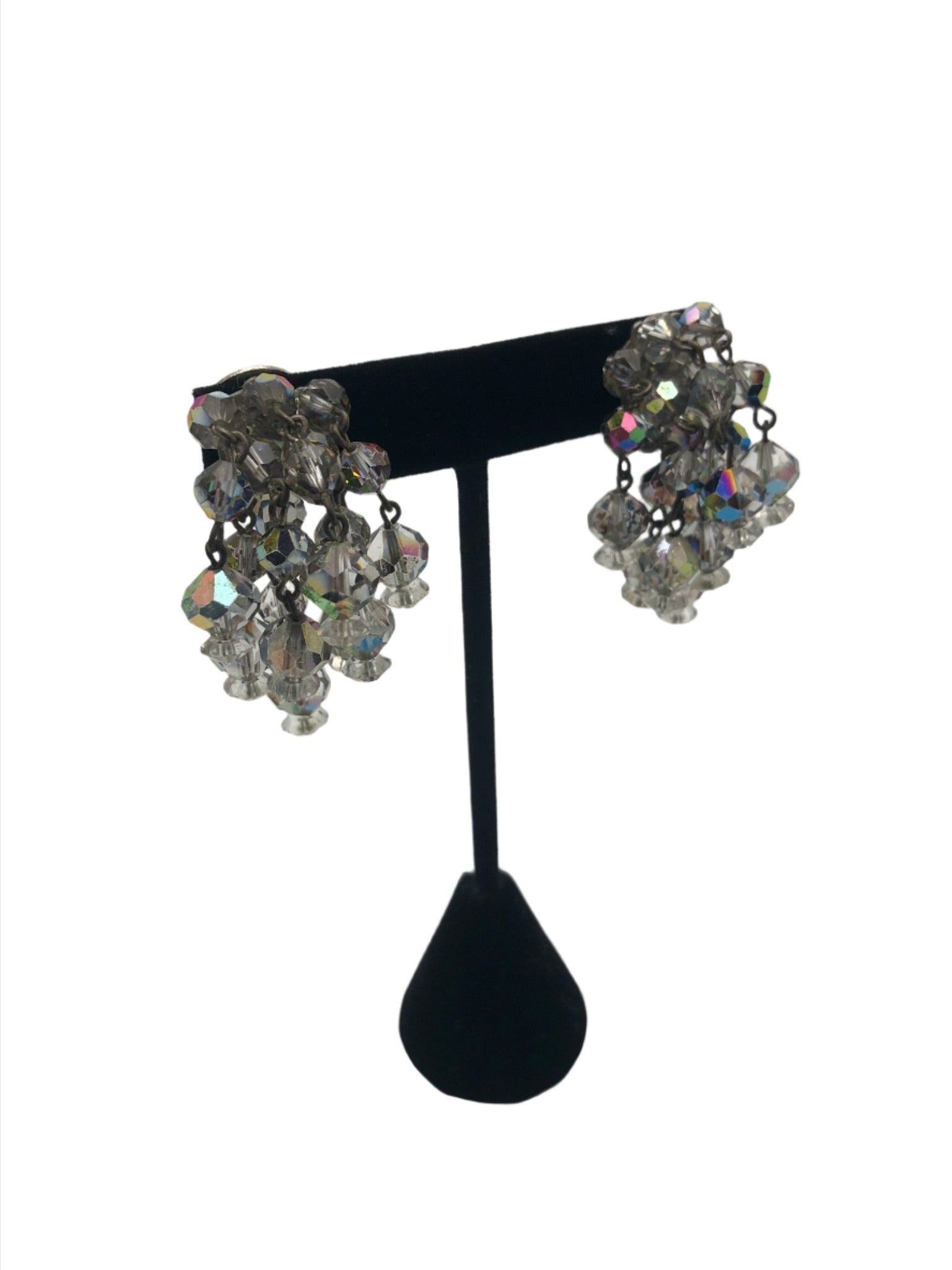 Vintage Cut Crystal Aurora Borealis Clip On Earrings