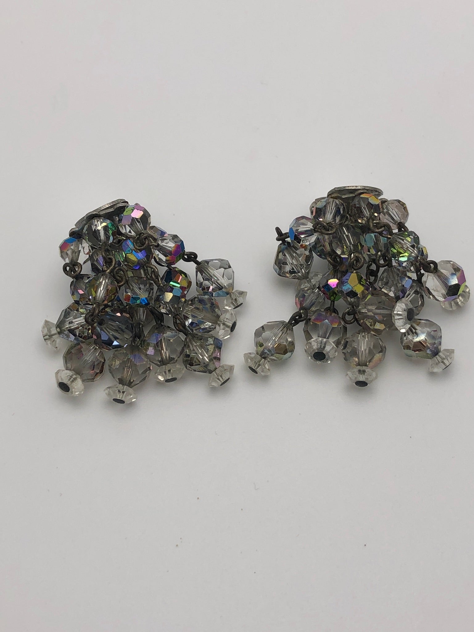 - Notes: Clear sparkling earrings have 8 dangling strands of faceted aurora borealis beads that shine beautiful colors in. light. Very fun