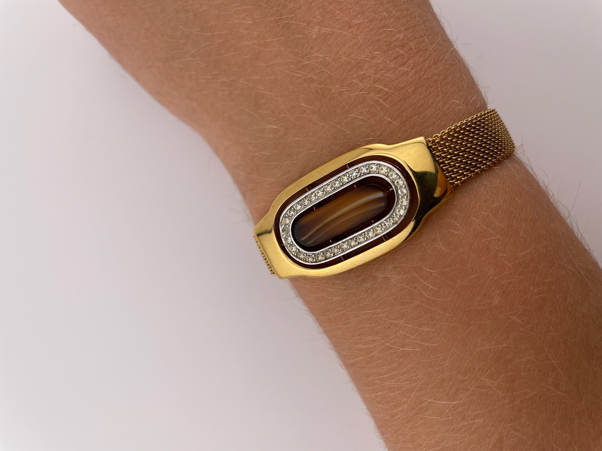 - Notes: Gold plated, metal mesh, clear rhinestones, imitation of natural stone.