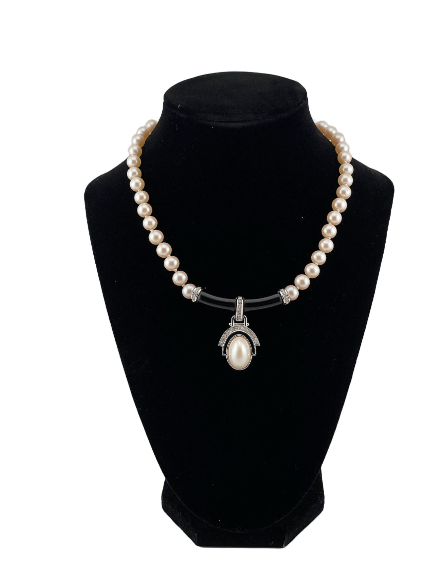 - Notes: Pearl imitation hand-knotted beads with sparkling Swarovski crystal rhinestones. Art Deco collection