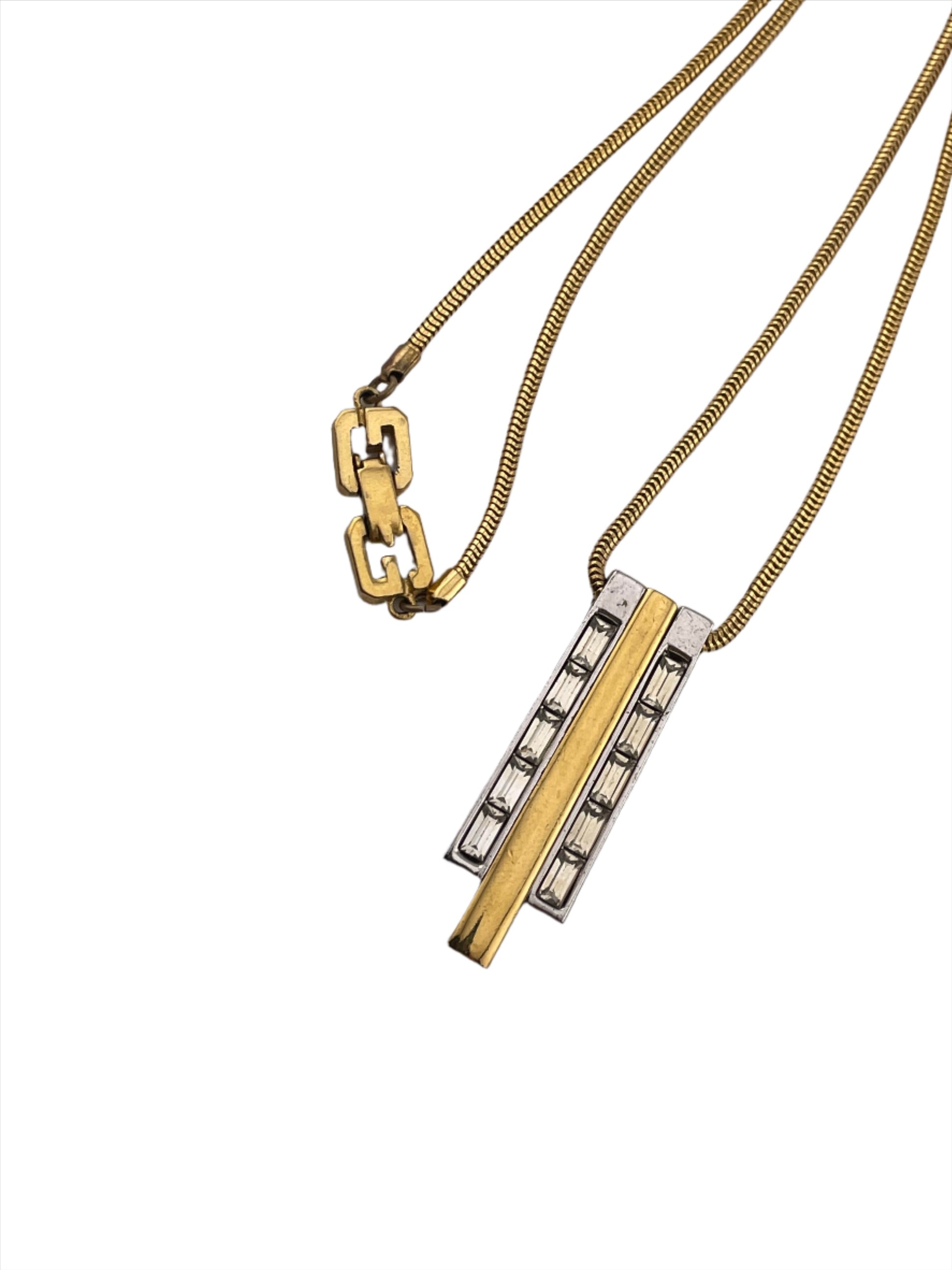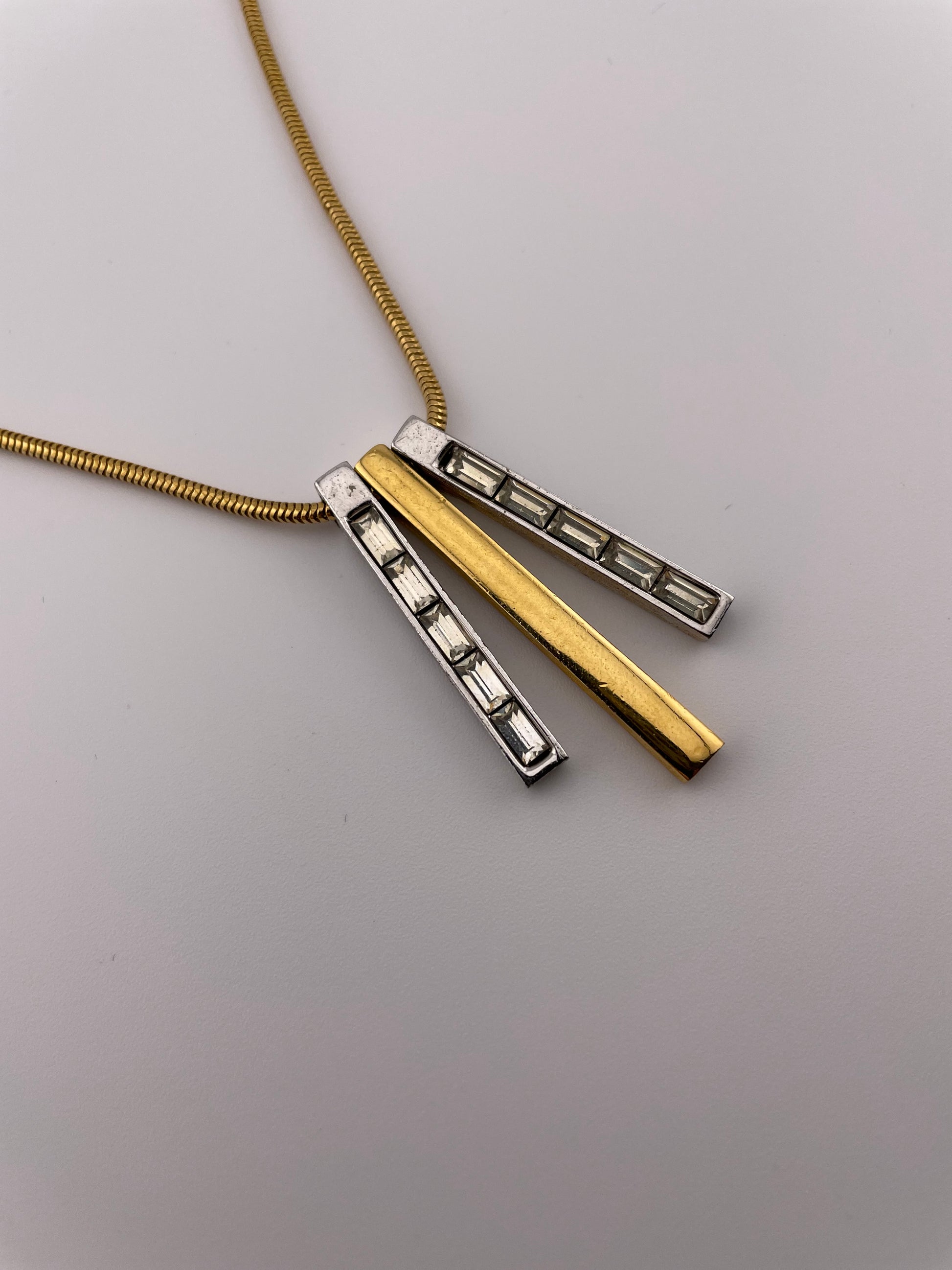 - Notes: Dangle two-tone silver/gold with rhinestones on pendant