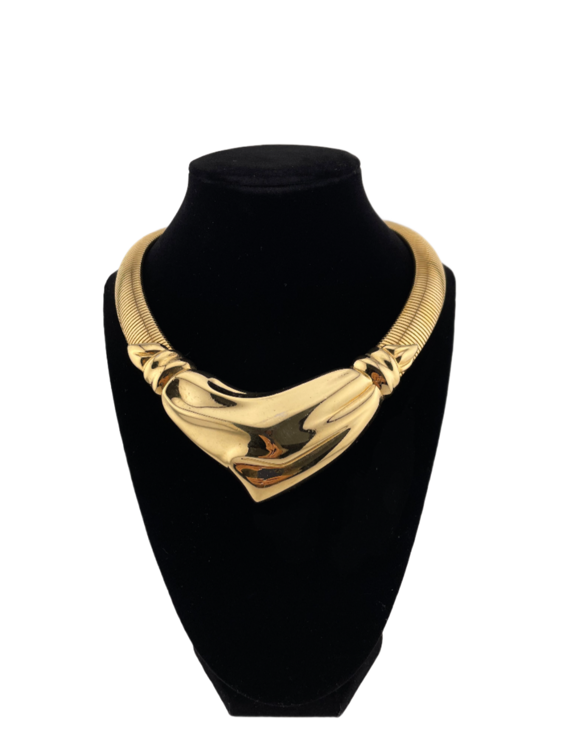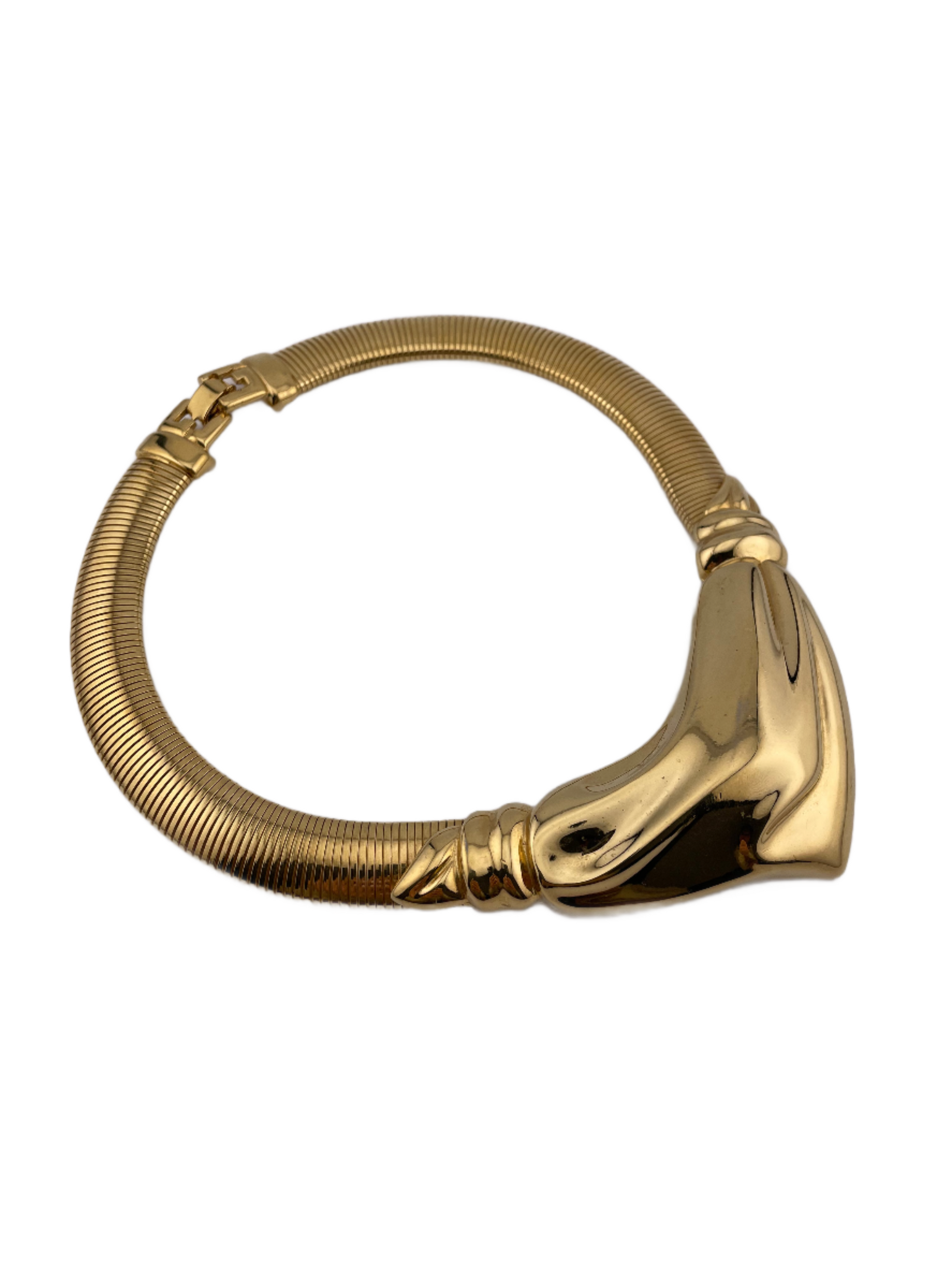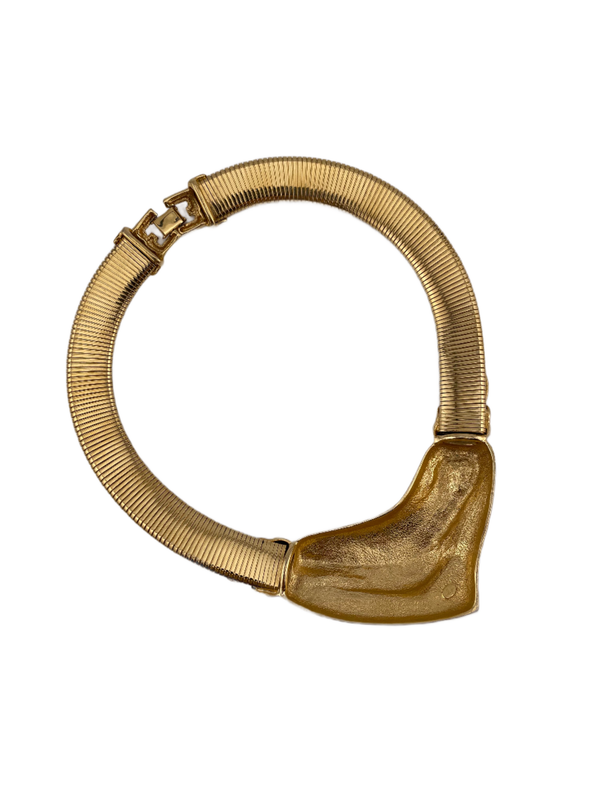 - Notes: Gold-plated choker collar, chunky with fold-over clasp
