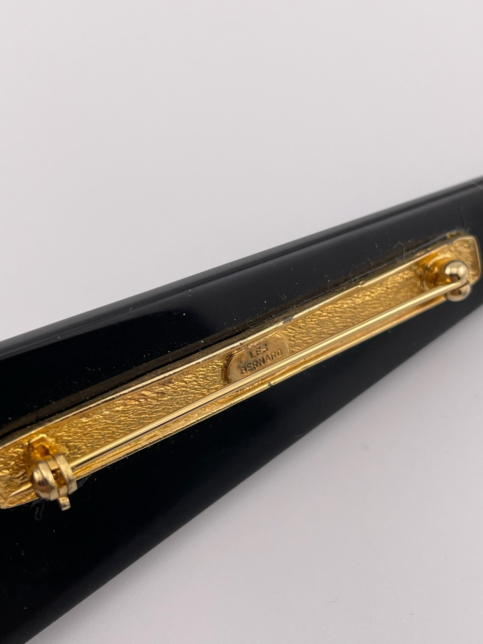 - Notes: Modern black lucite with pearl imitation cabochon in gold tone setting