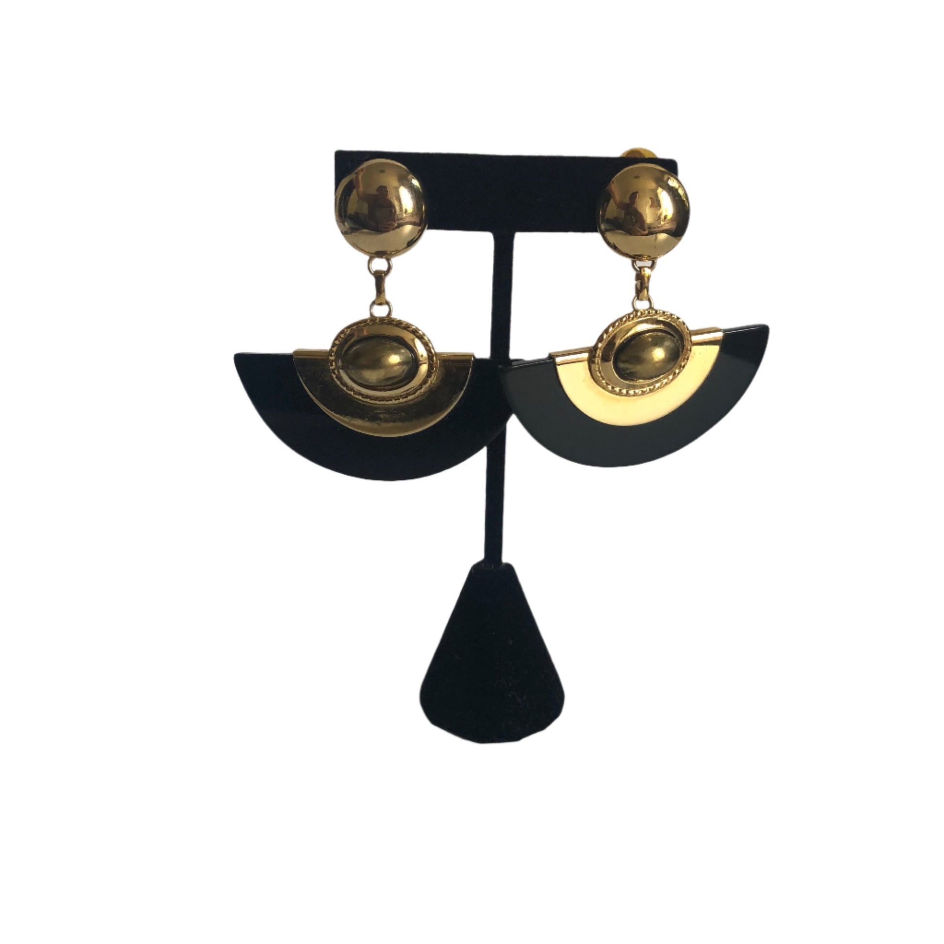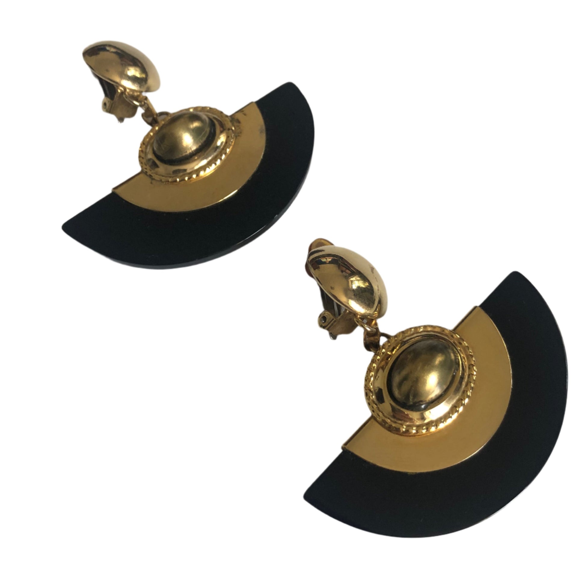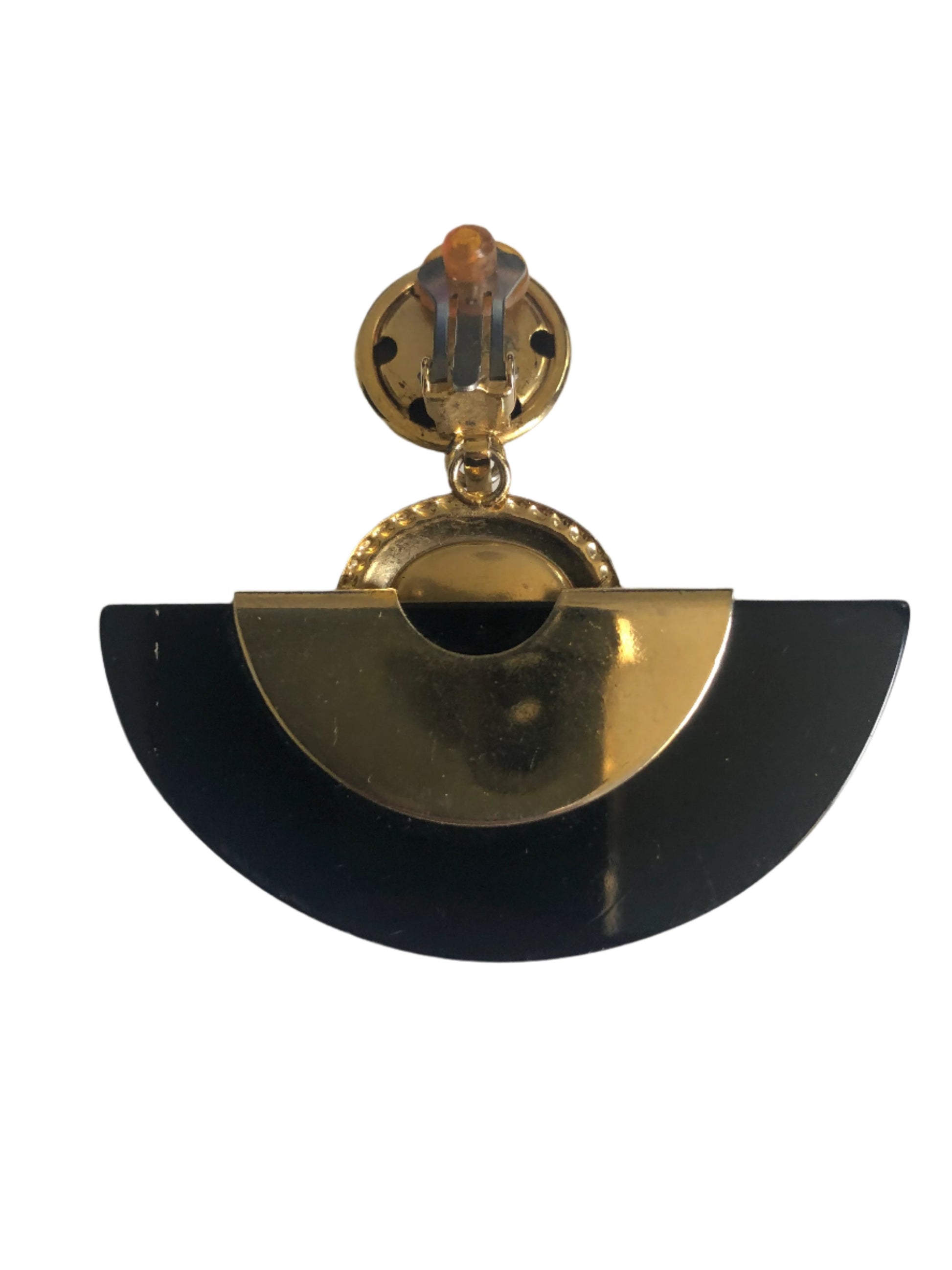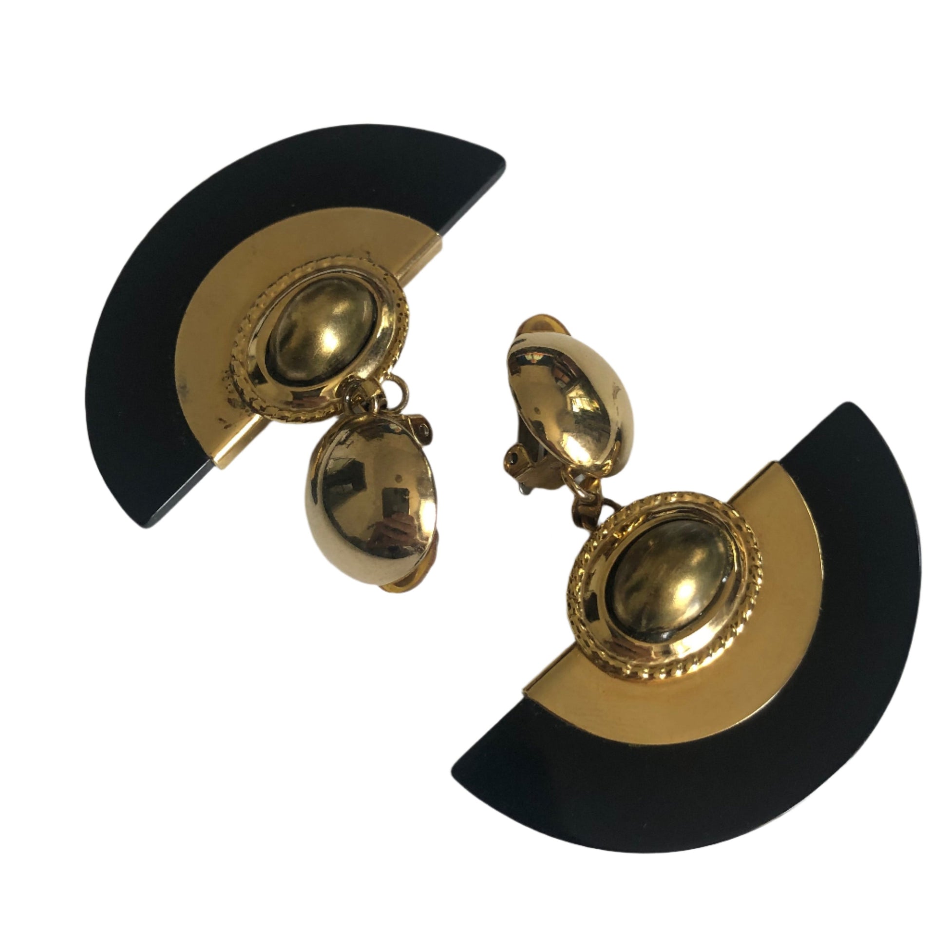 - Notes: vintage earrings clip on ,70s / dangle part is decorated plastic and gold plated metal/ no mark