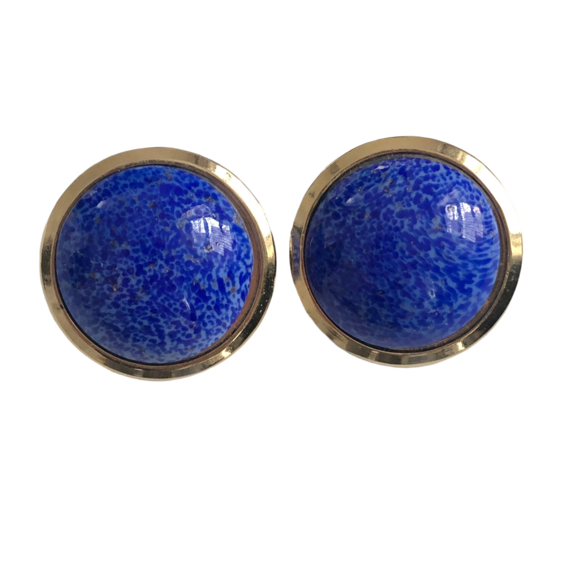 - Notes: vintage large round clip on , decorated blue cabochon , simulate natural stone