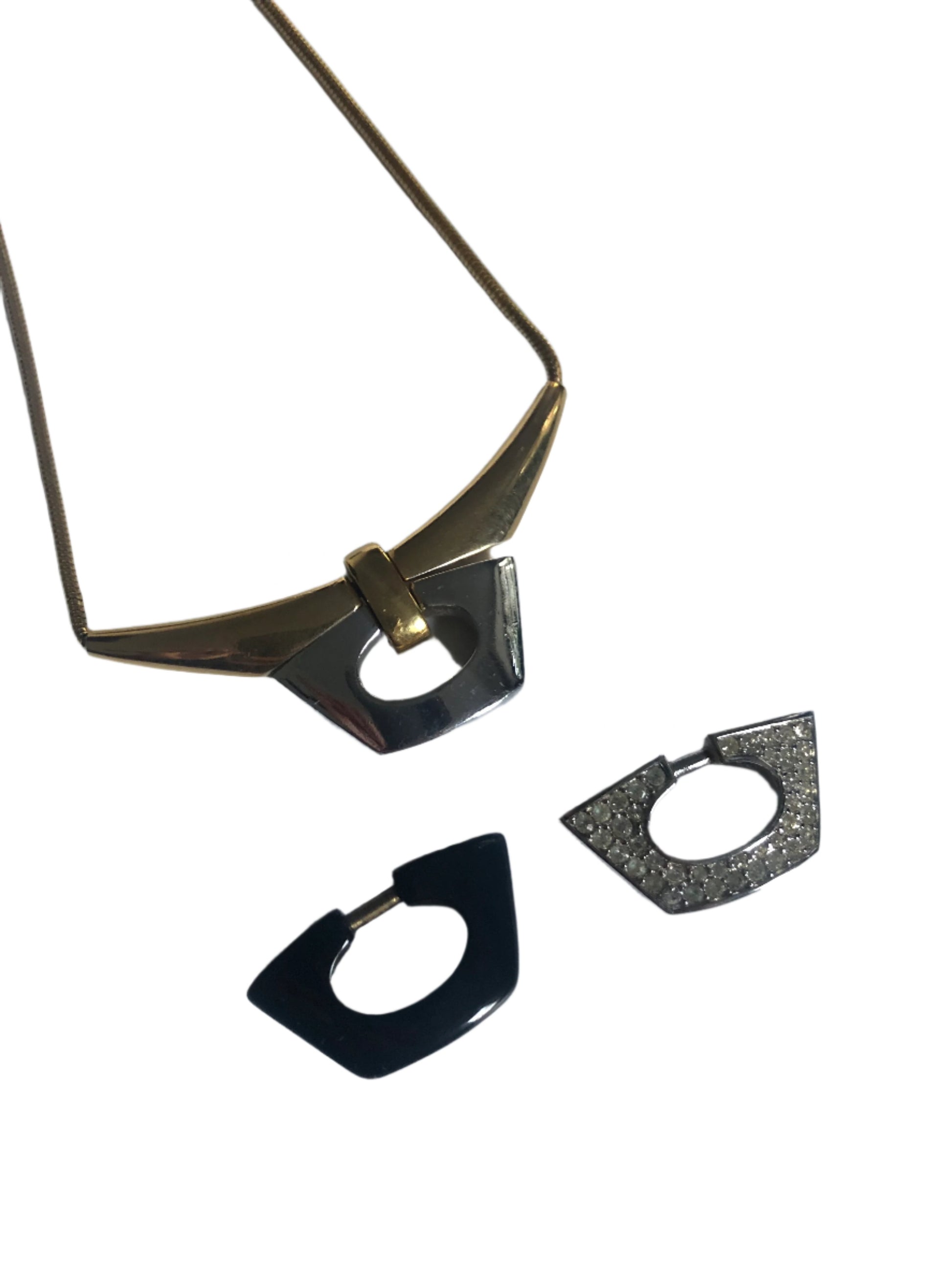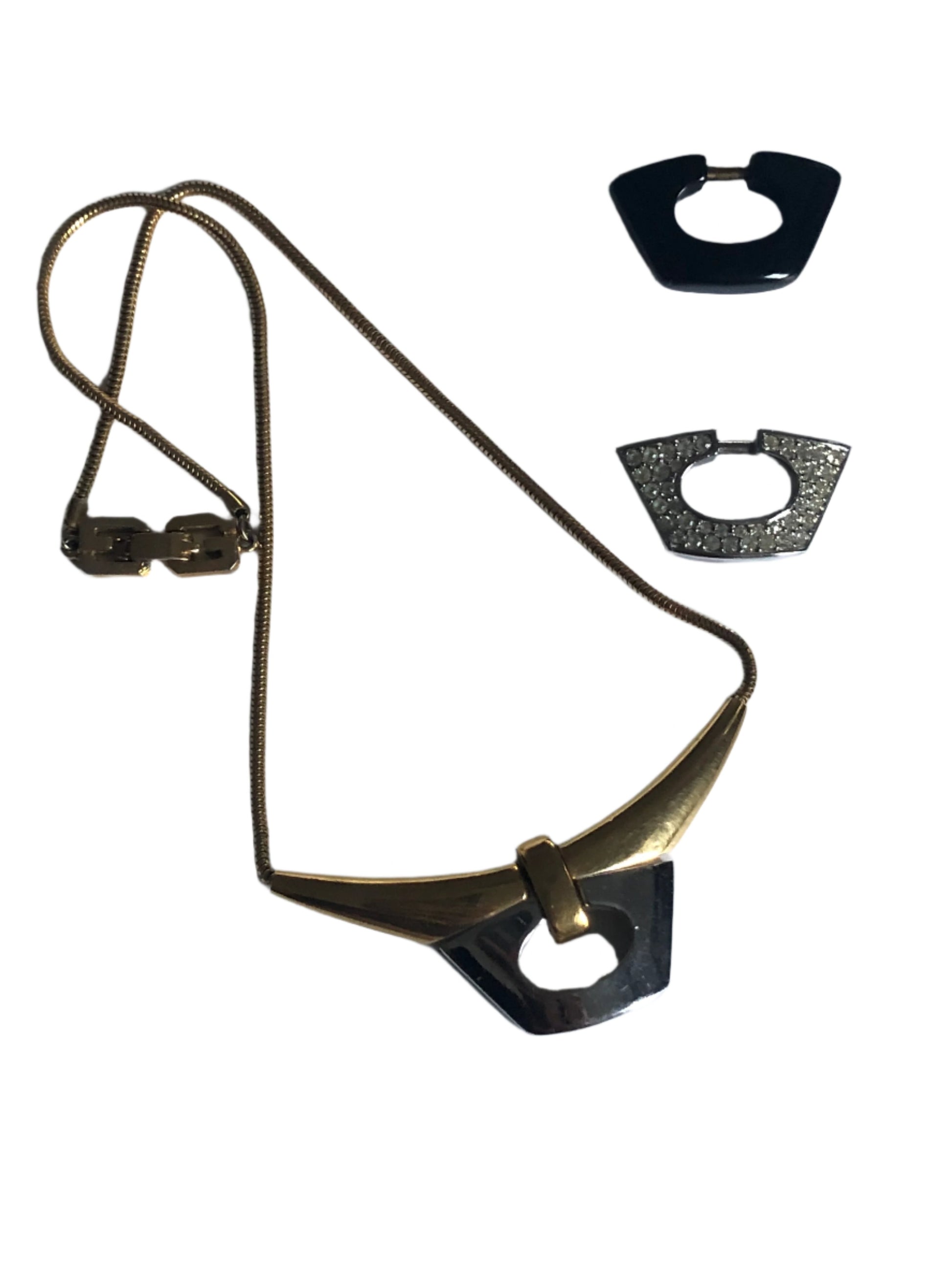 - Notes: vintage necklace choker with moveable part of pendant by GIVENCHY / black ducat, silver tone and pave clear rhinestones / gold plated / marked