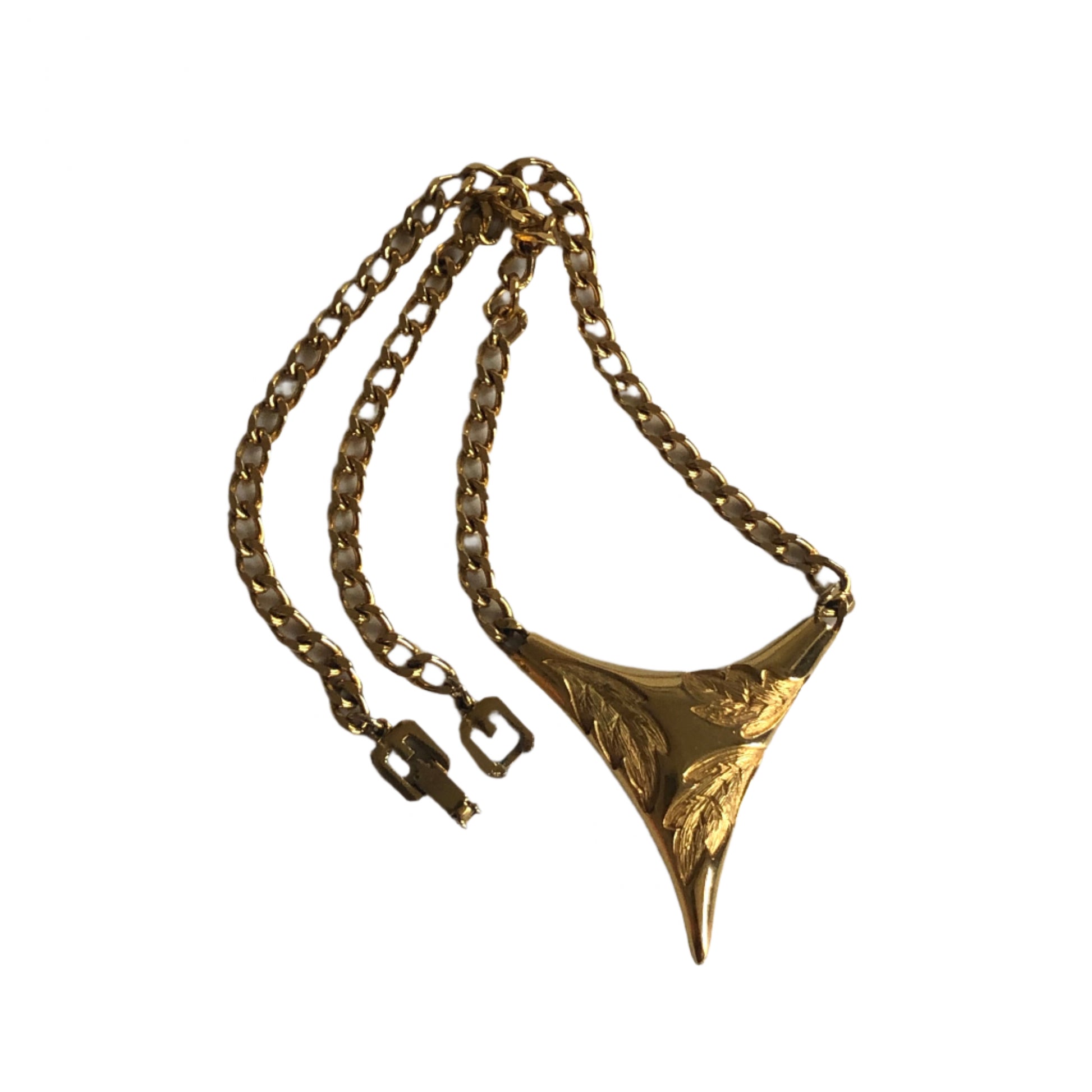 Vintage GIVENCHY necklace carved leaf pendant 1979