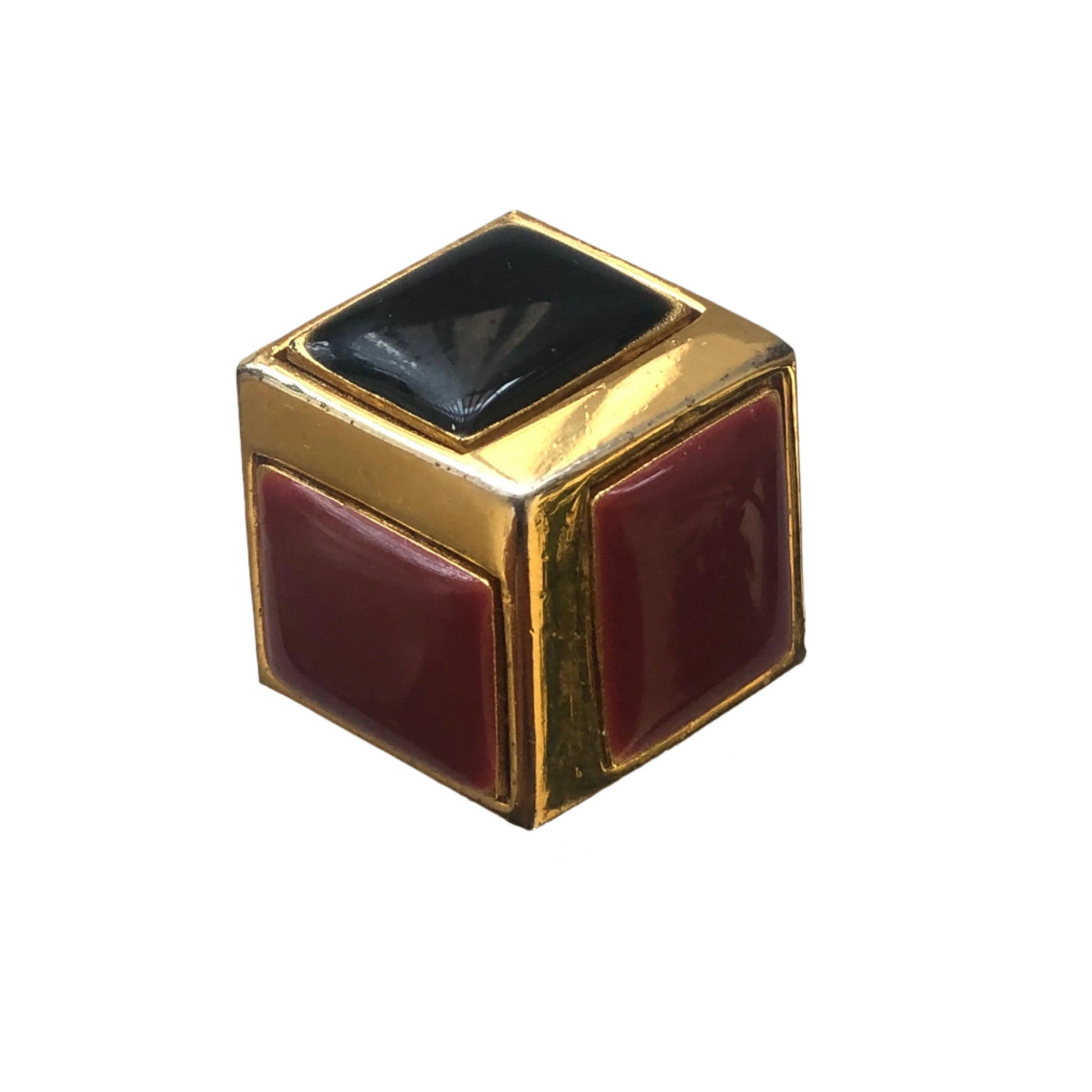 - Notes: vintage small brooch pin cube by Givenchy , 1980 / gold plated , decorated red black enamel / signed