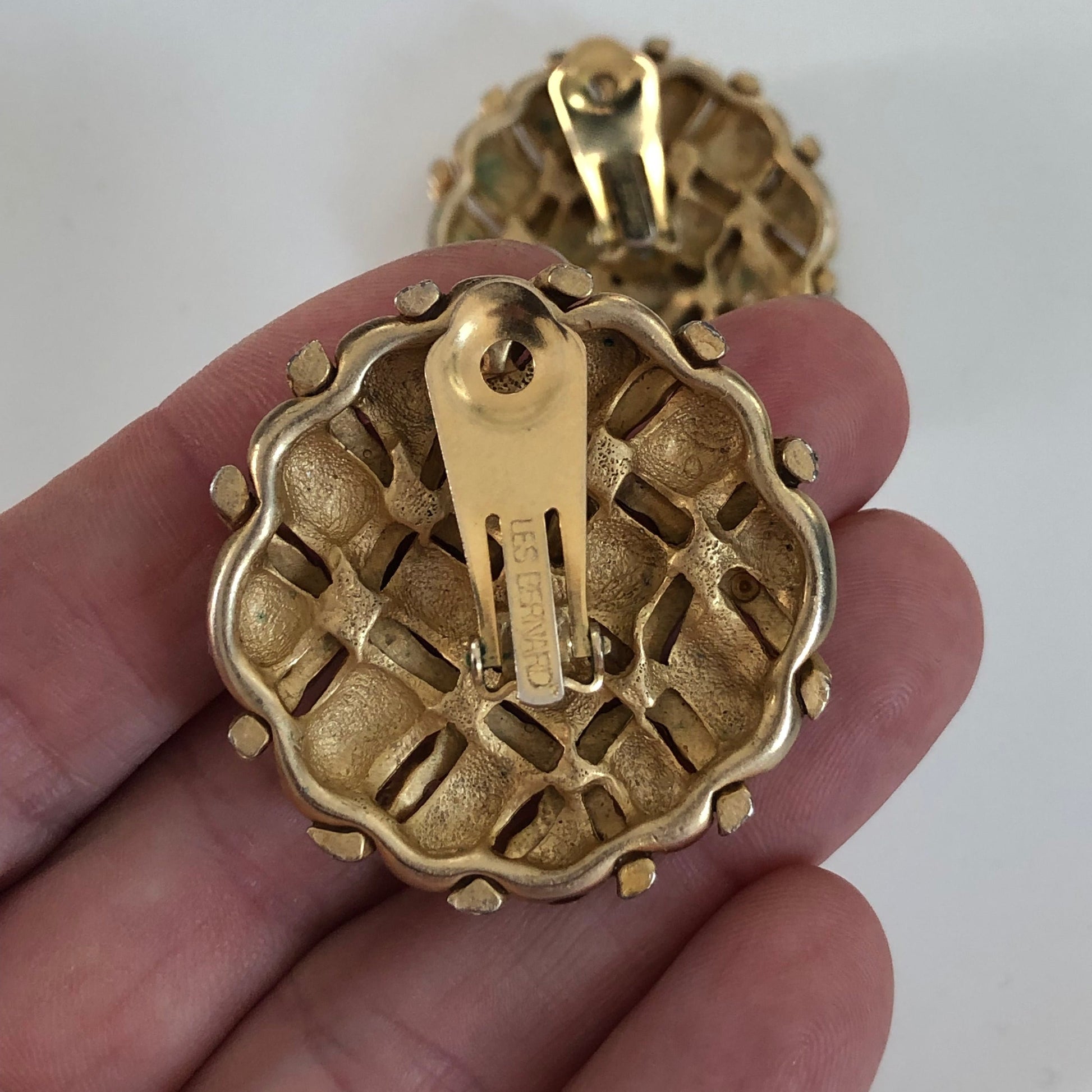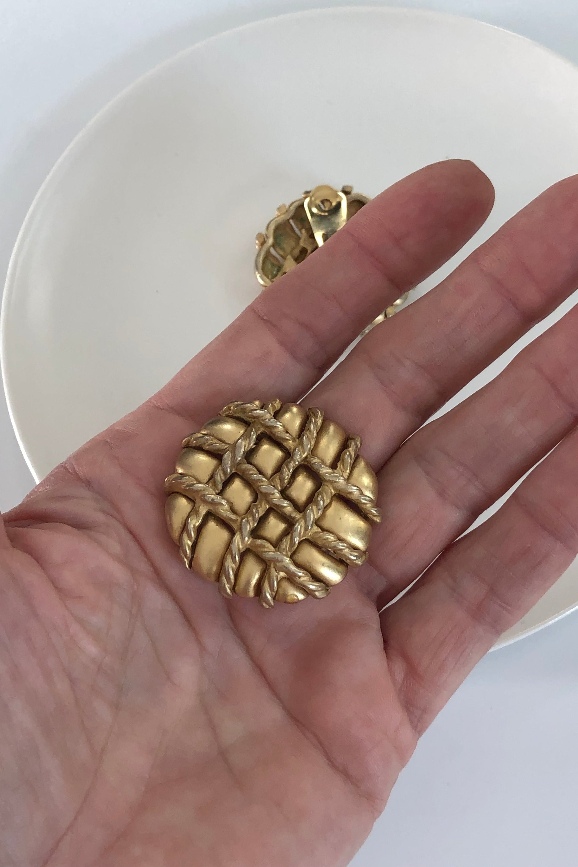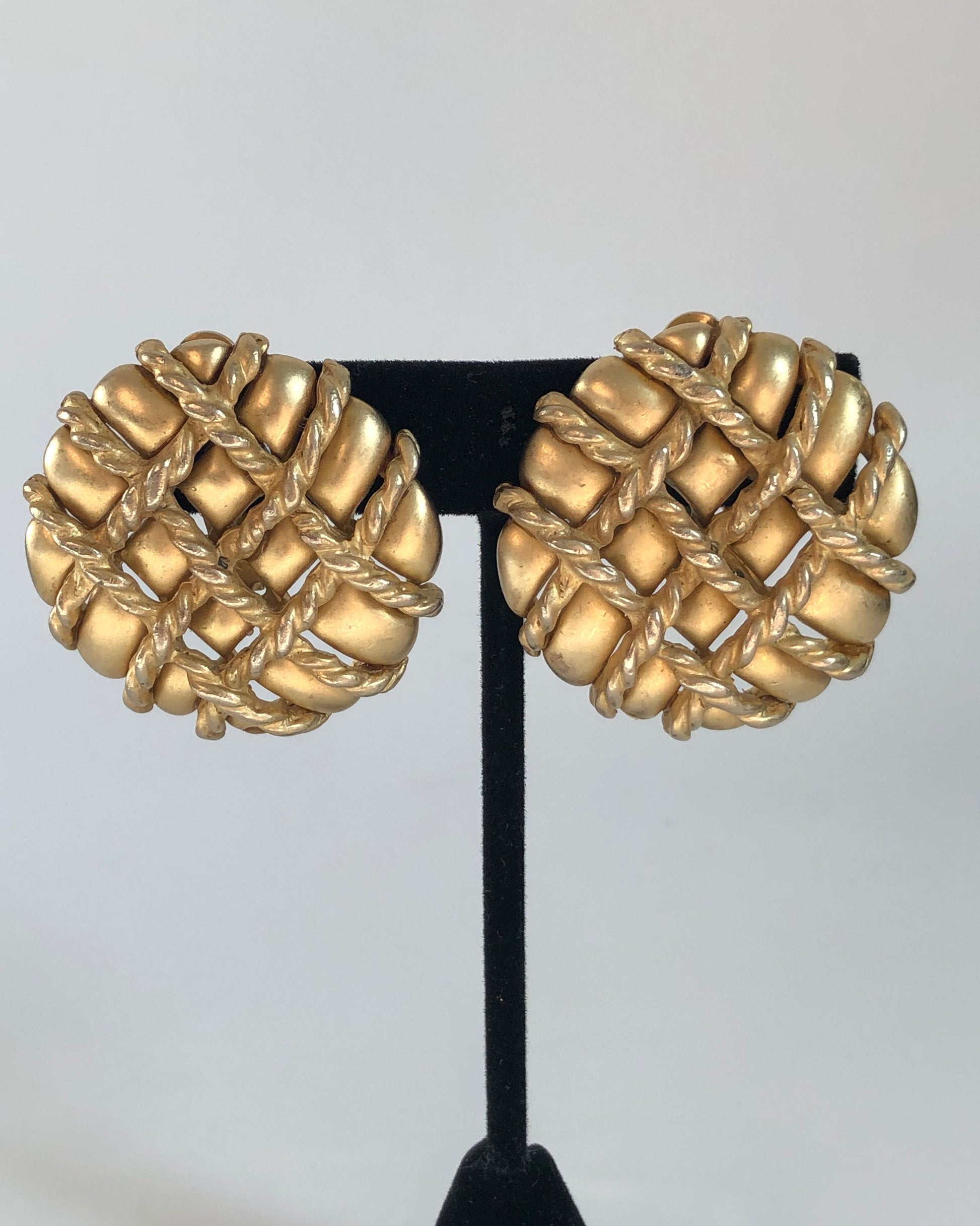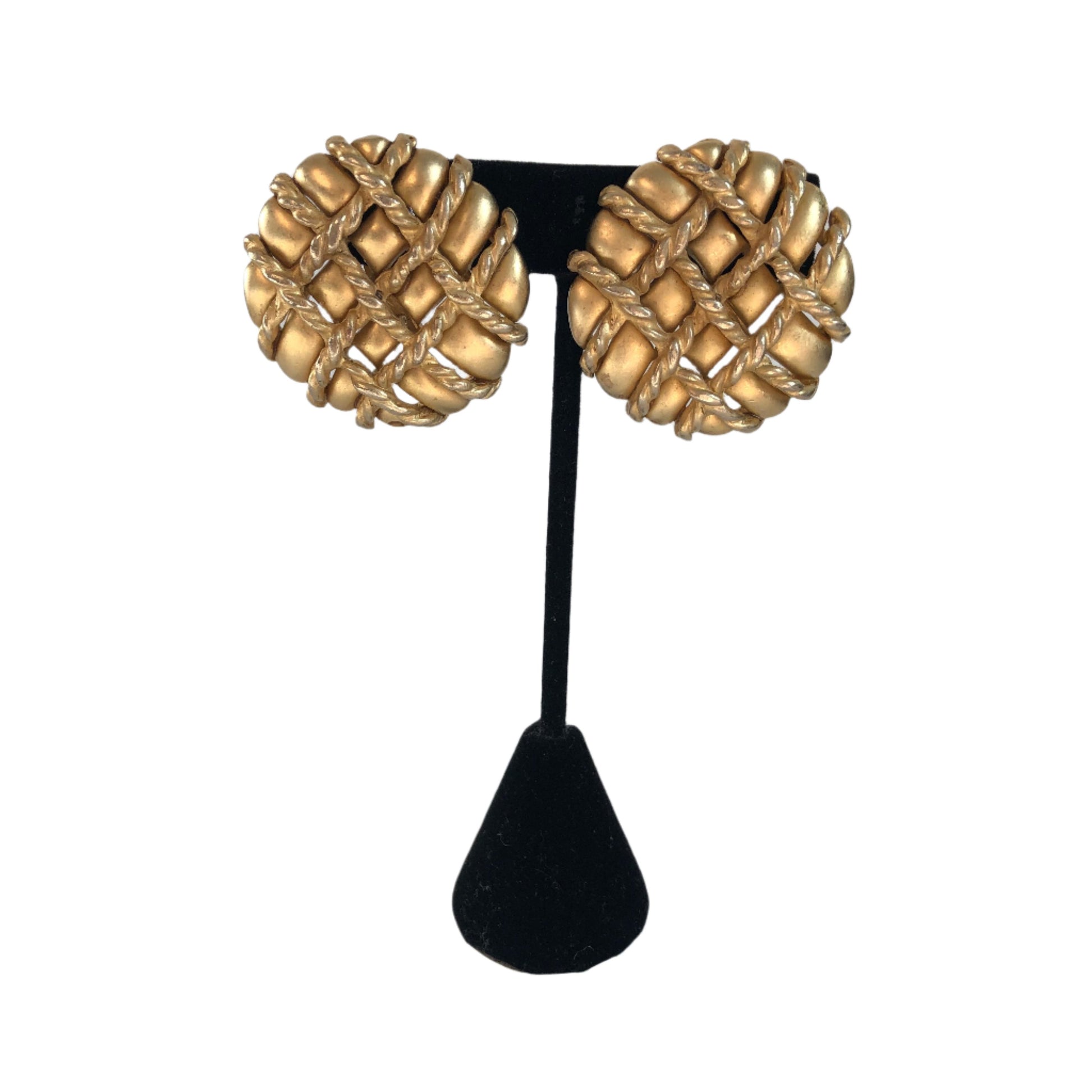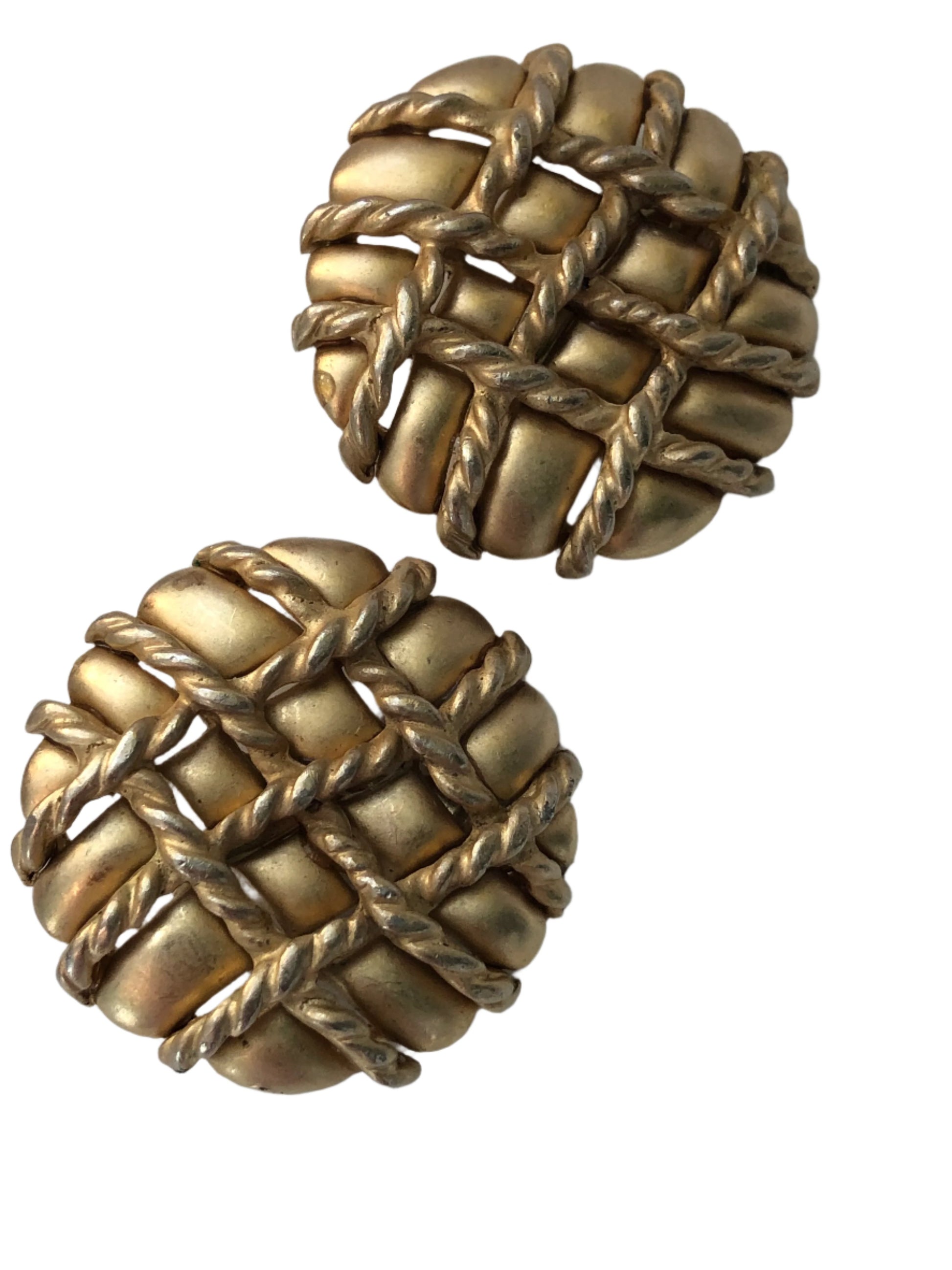 - Notes: vintage large chunky brushed gold earrings clips 80s / imitation wicker cord / signed on the back