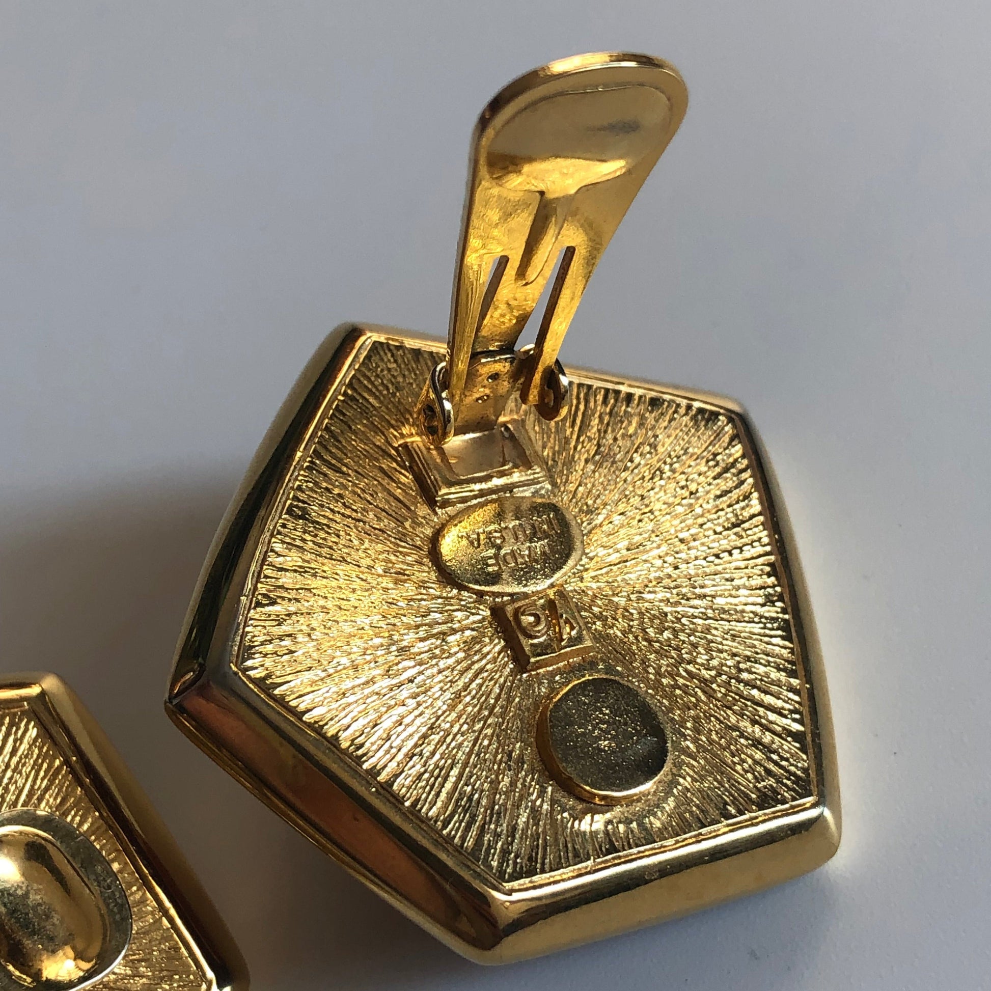 - Notes: vintage large chunky brushed gold earrings clips 80s / colorful lucite elements gripoix style/ signed on the back