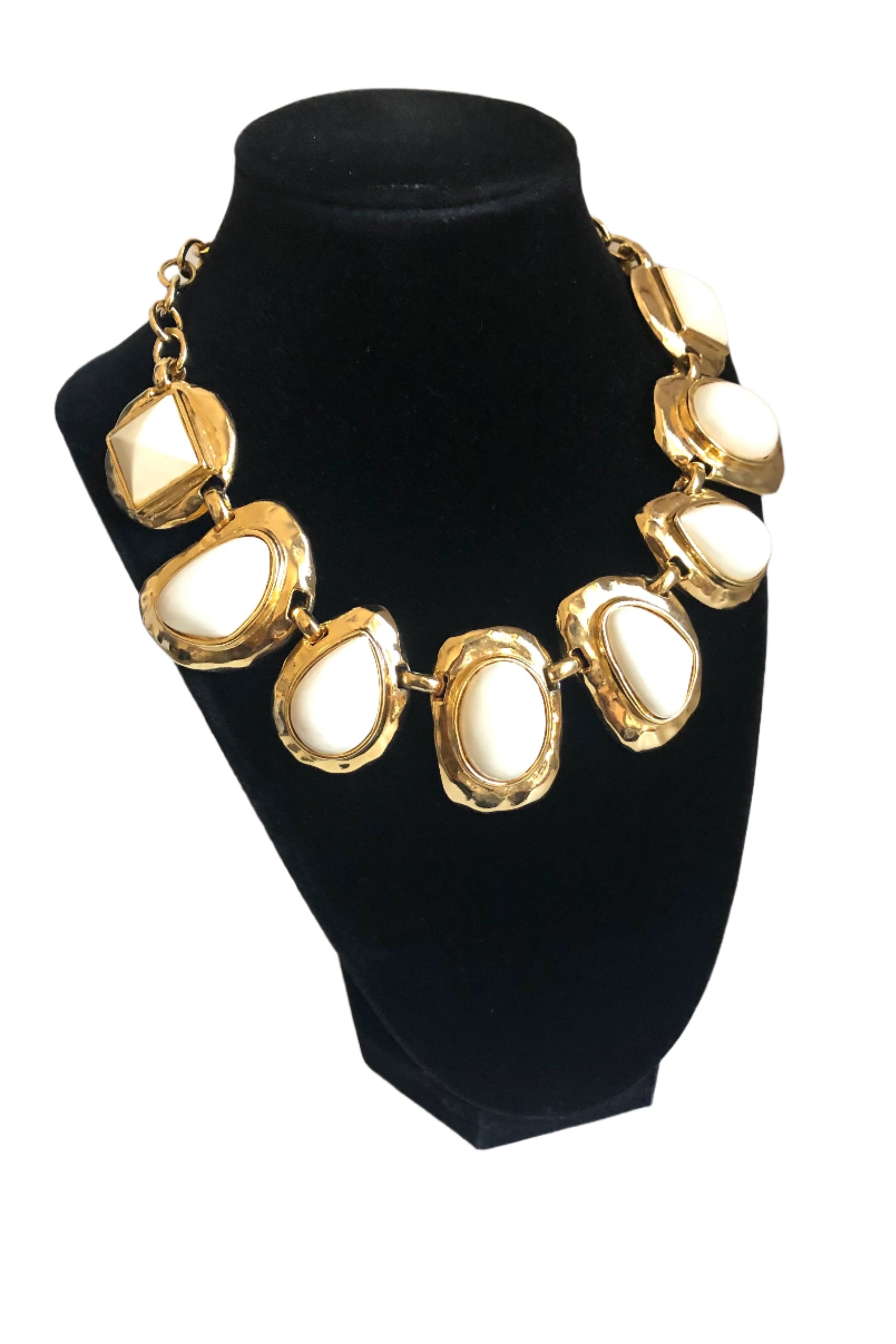 - Notes: Chunky necklace with white resin elements in different shapes/ gold plated