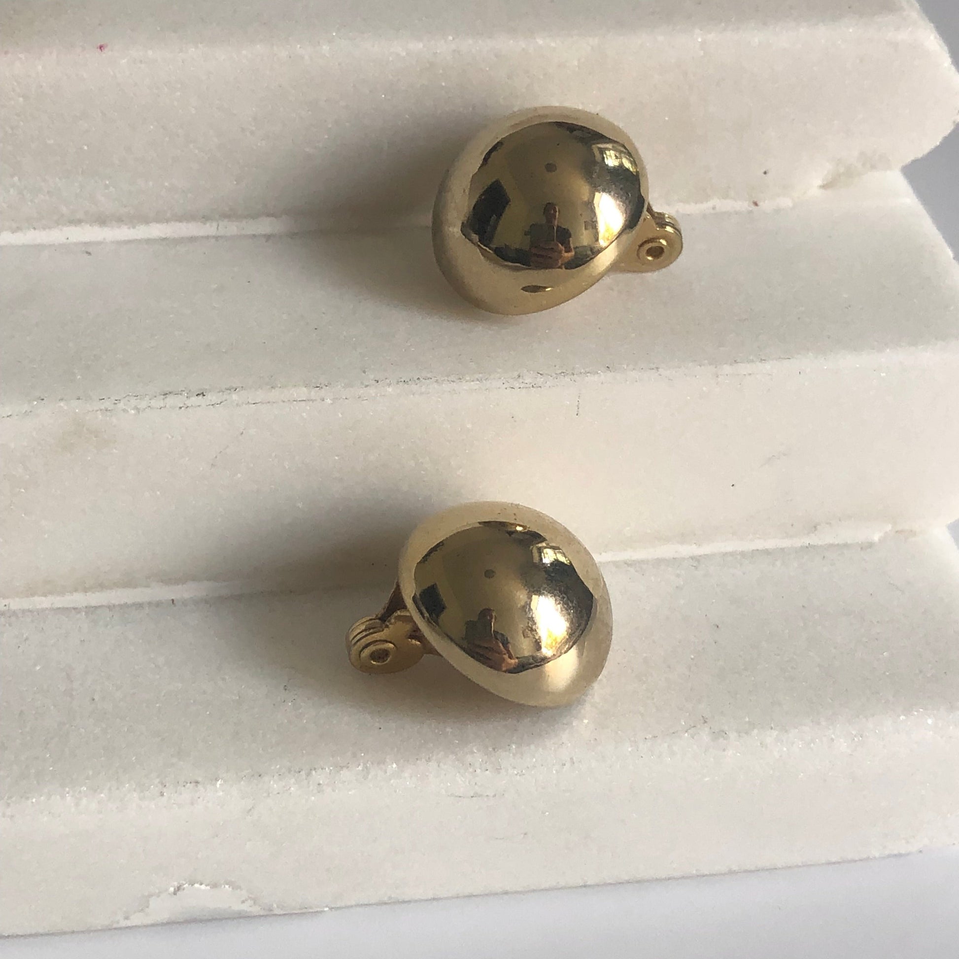 - Notes: gold tone metal round earrings clip on ,90s / signed