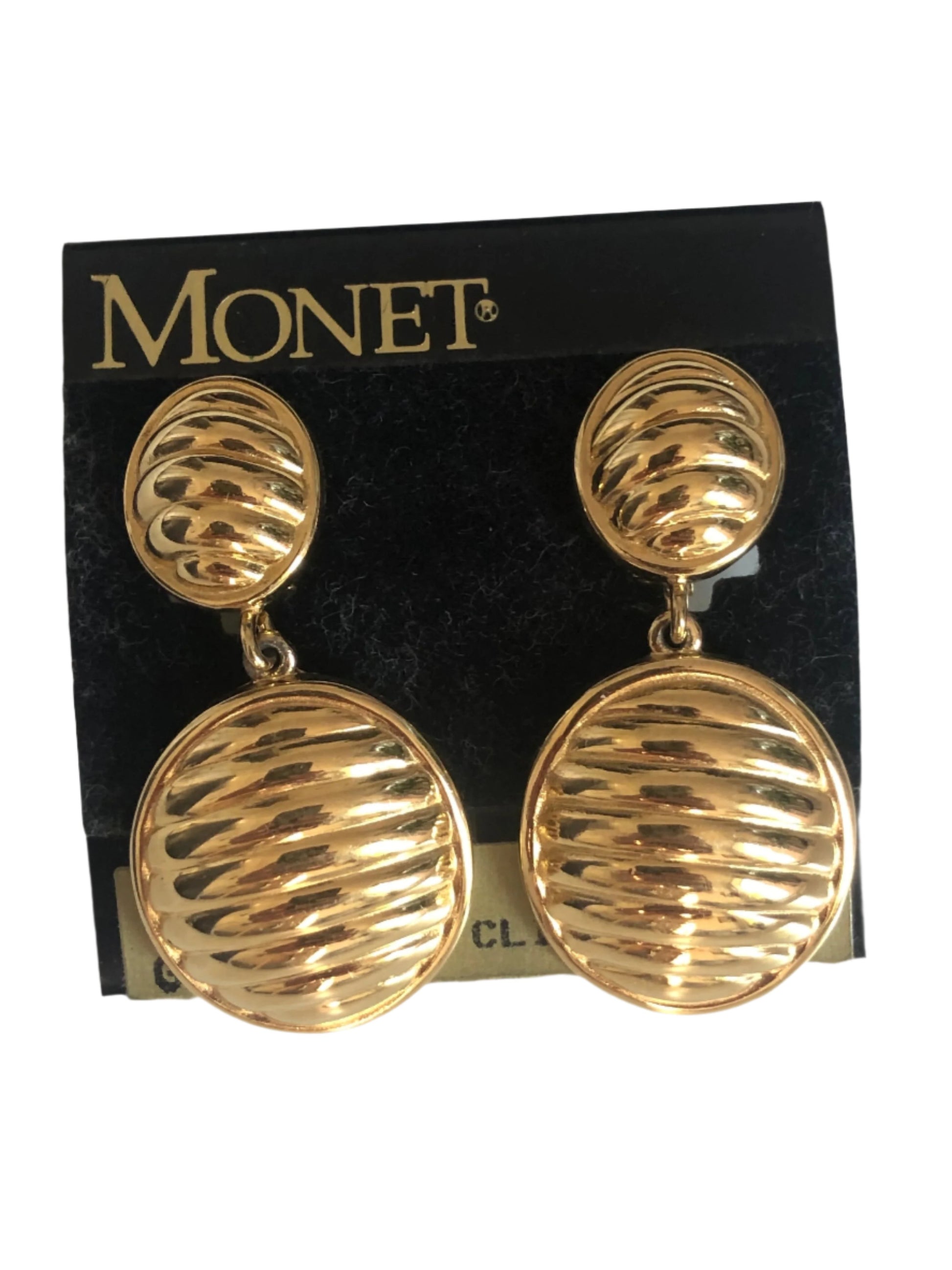 - Notes: vintage earrings clip on monet , 90 / otiginal display / gold plated , glossy texured / signed