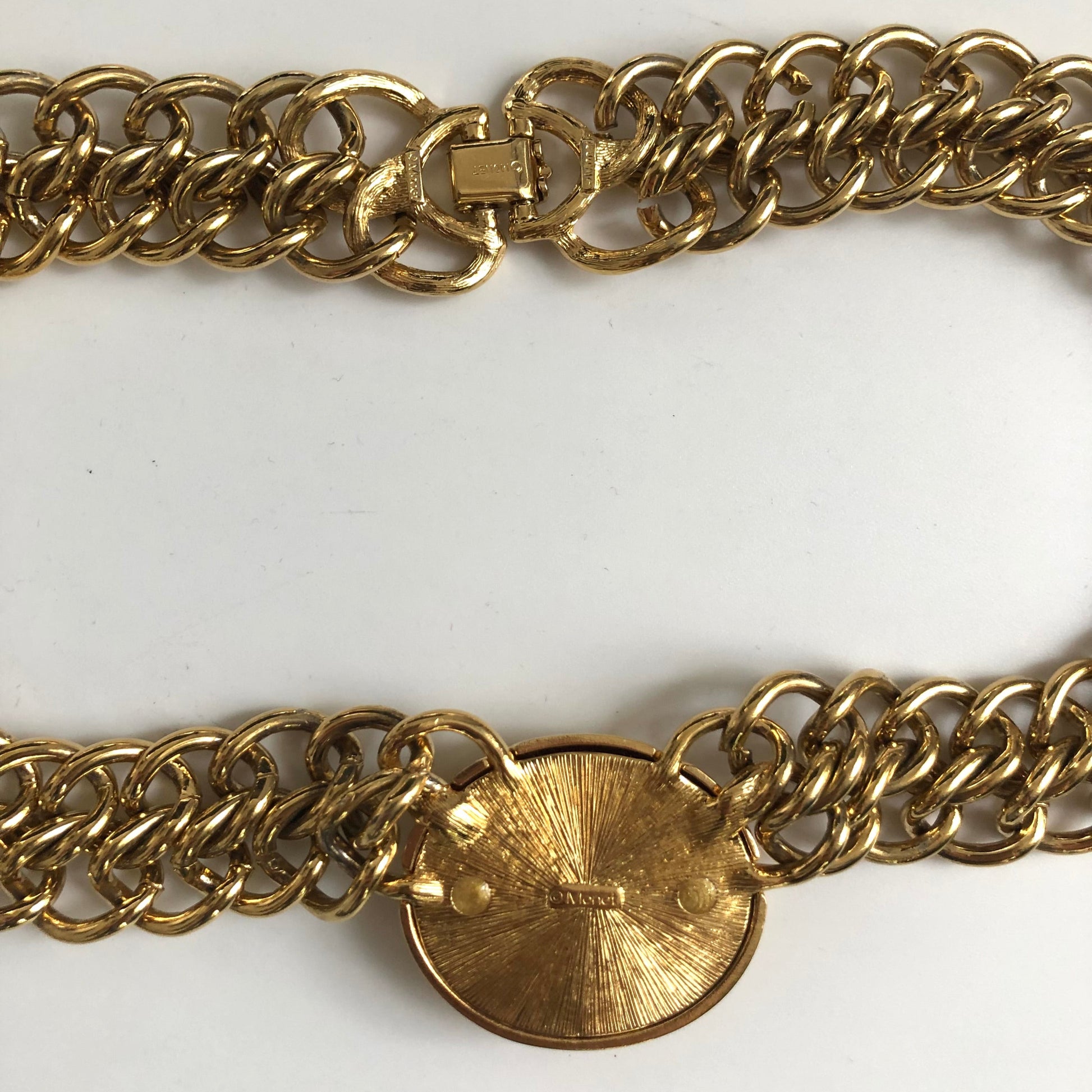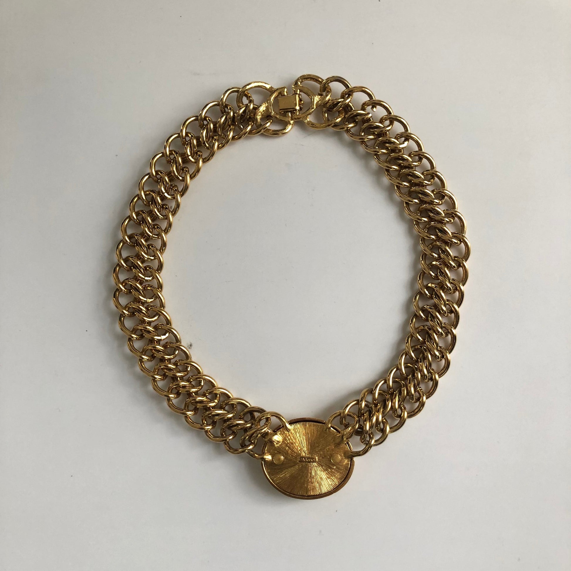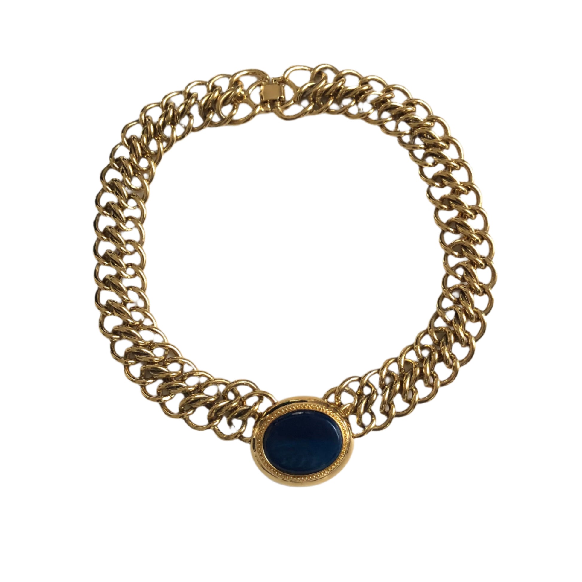 - Notes: vintage necklace by Monet , 80s/ double gold plated chain / the pendant decorated blue glass cabochon / signed / has weight