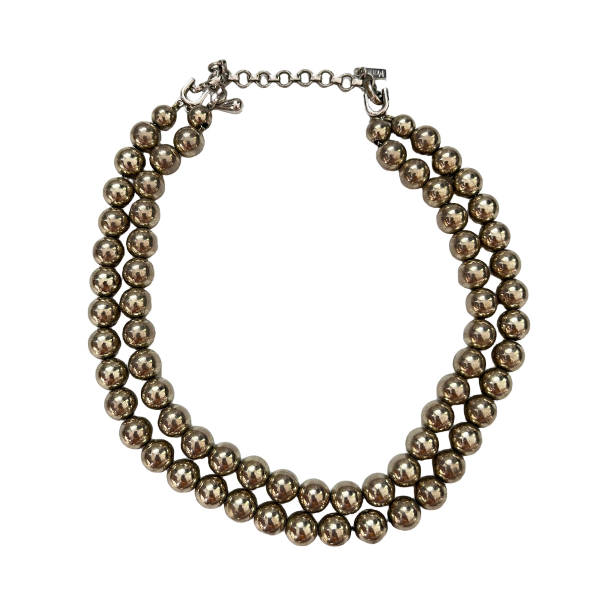 - Notes: vintage two strand necklace by Monet , 1960s / silver plated metal beads on delicate chain / signed metal tag