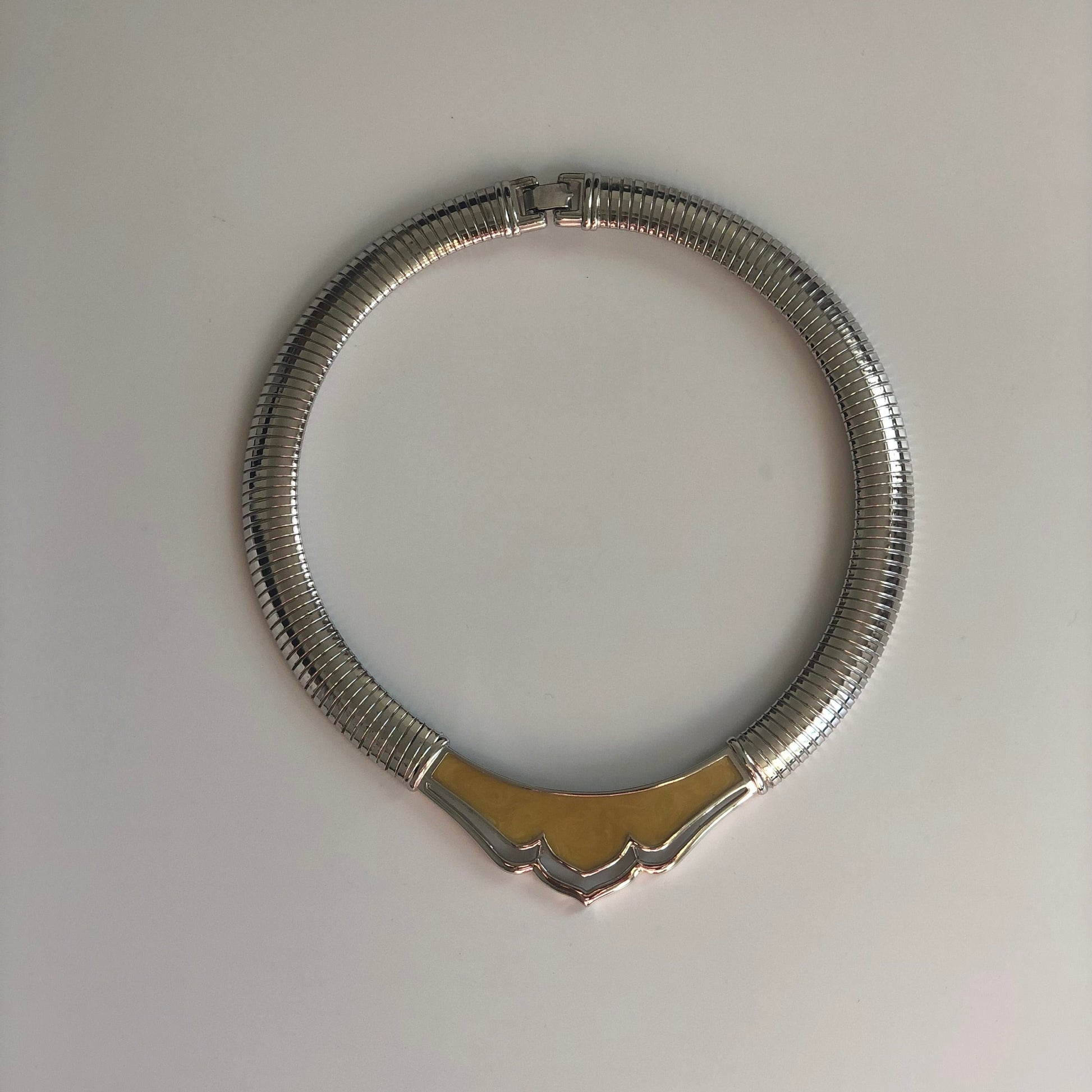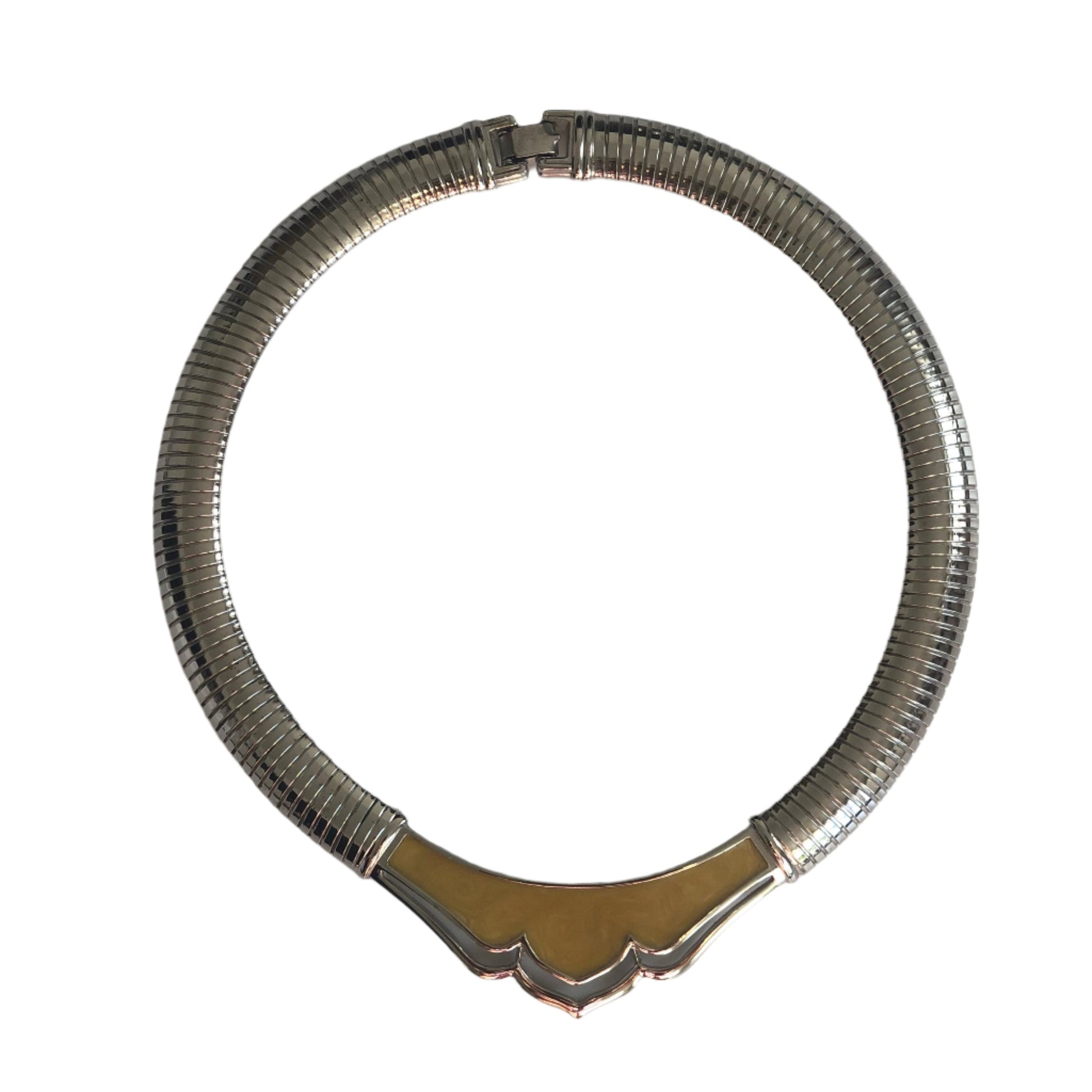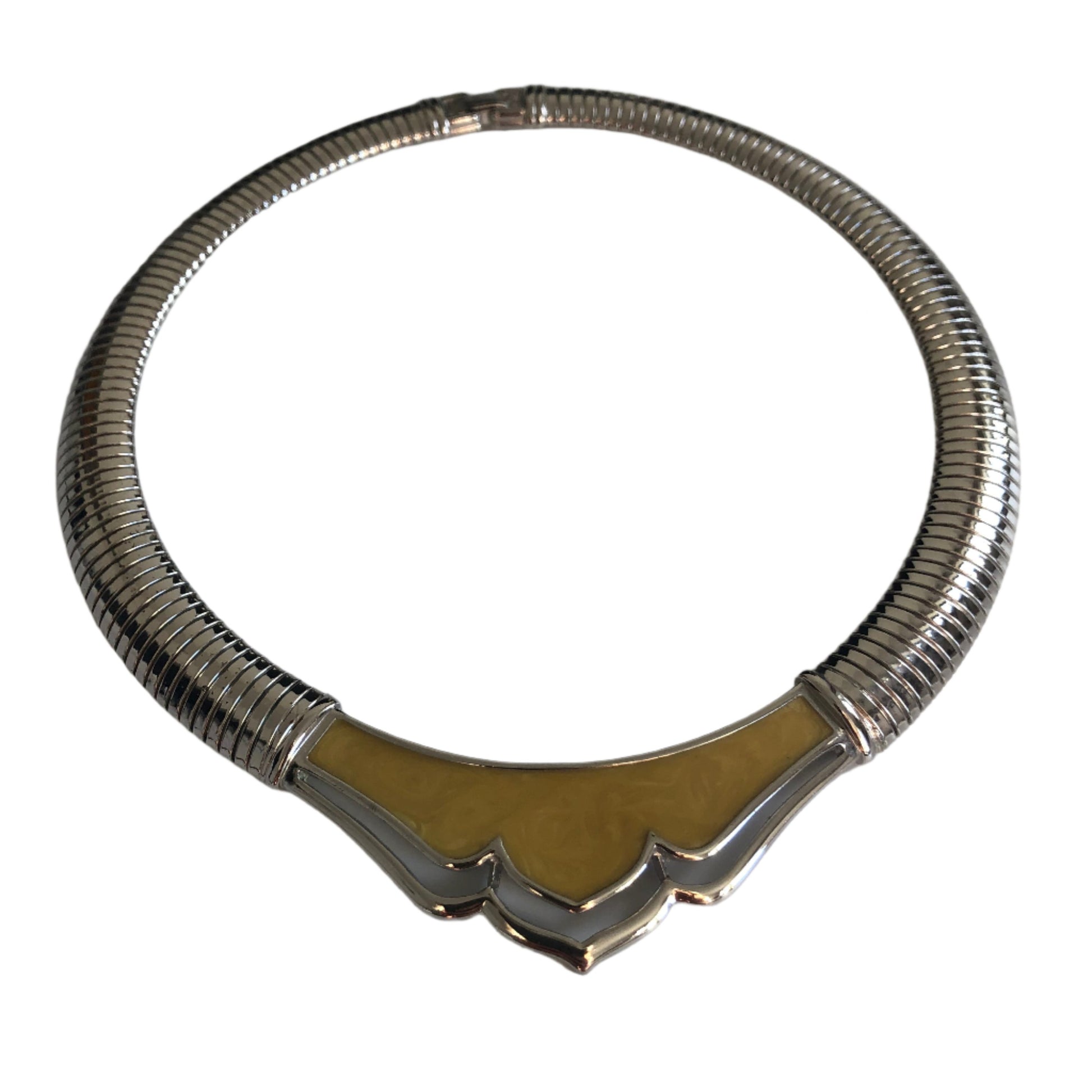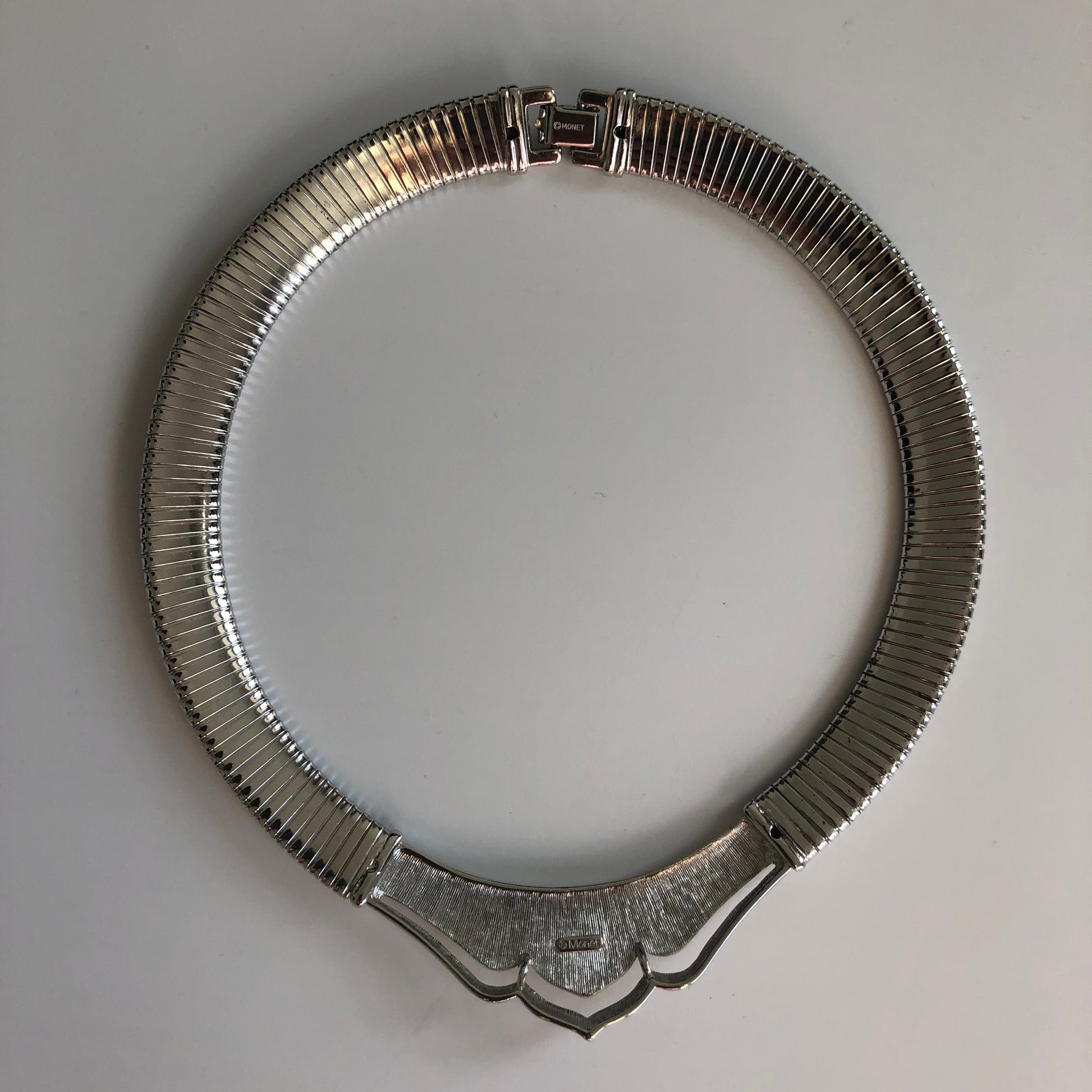 - Notes: vintage necklace by MONET , 80s / silver tome metal omega with statement pendant enamel / marked on the back
