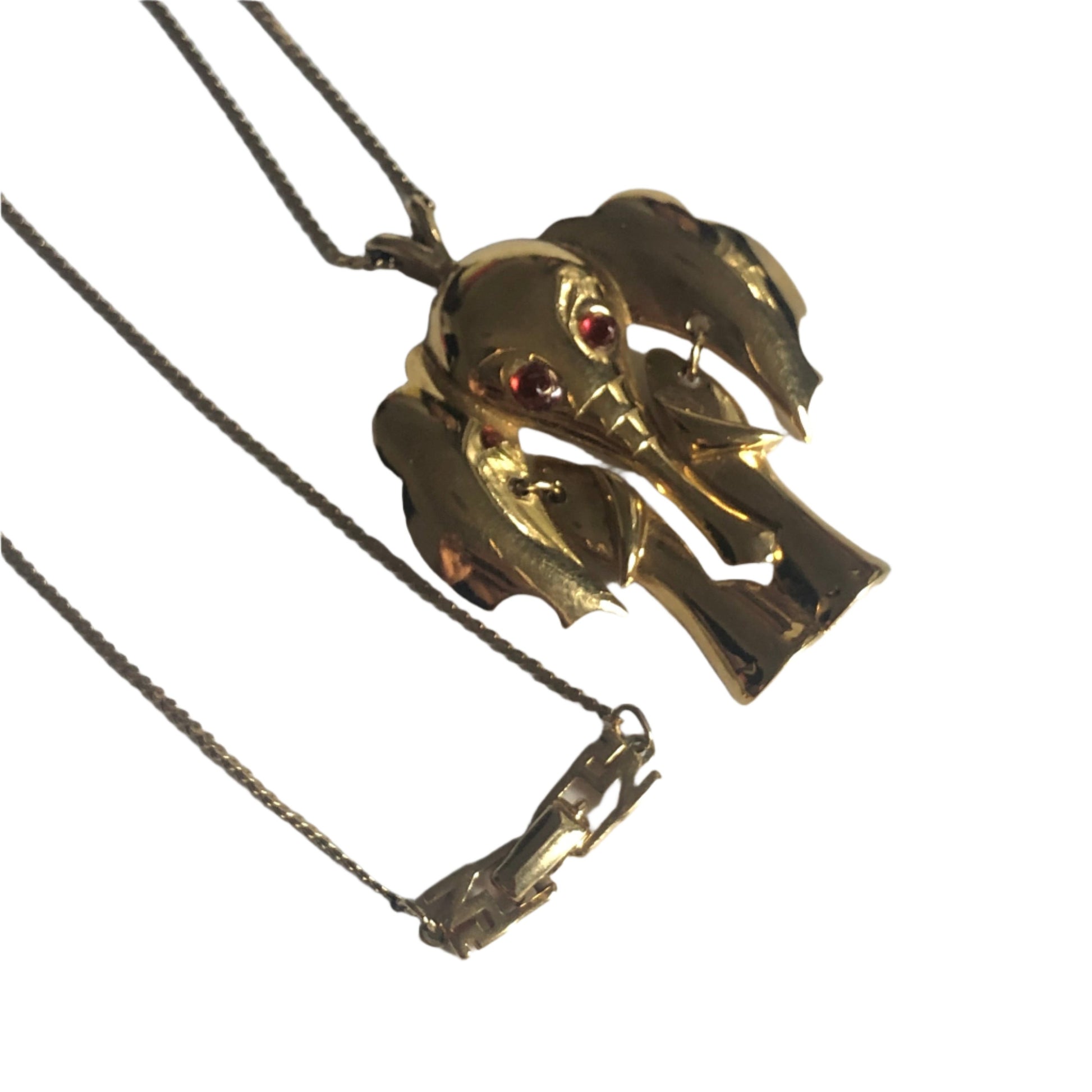 - Notes: vintage necklace with elephant pendant by Nina Ricci , 80s/ gold plated /ruby glass cabochon / signed