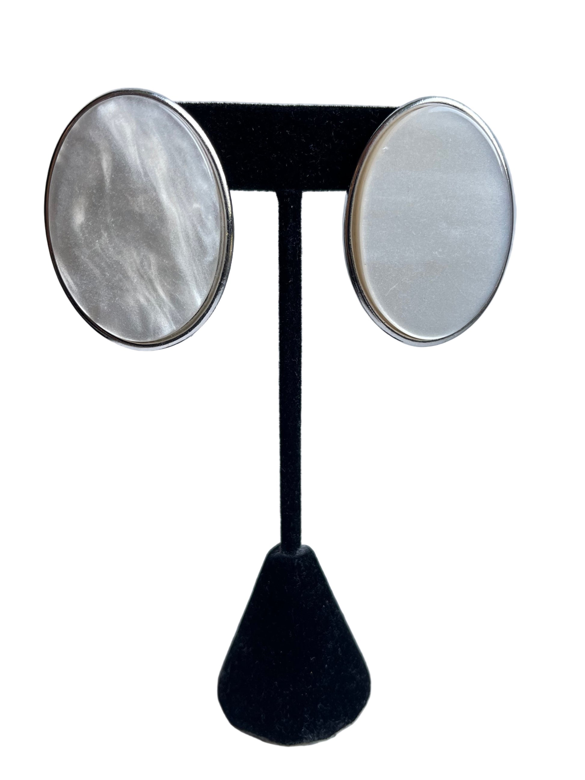 Yves Saint Laurent YSL earrings oval mother of pearl resin 1980s