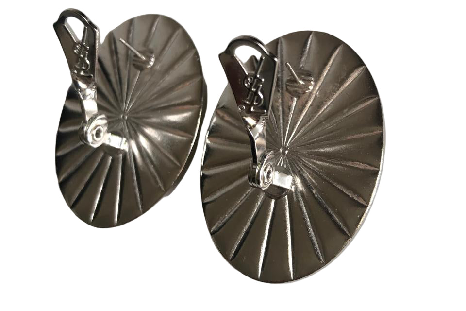 - Notes: vintage oval earrings mother of pearl elements byYves Saint Laurent/ silver tone/ signed on the back monogram YSL