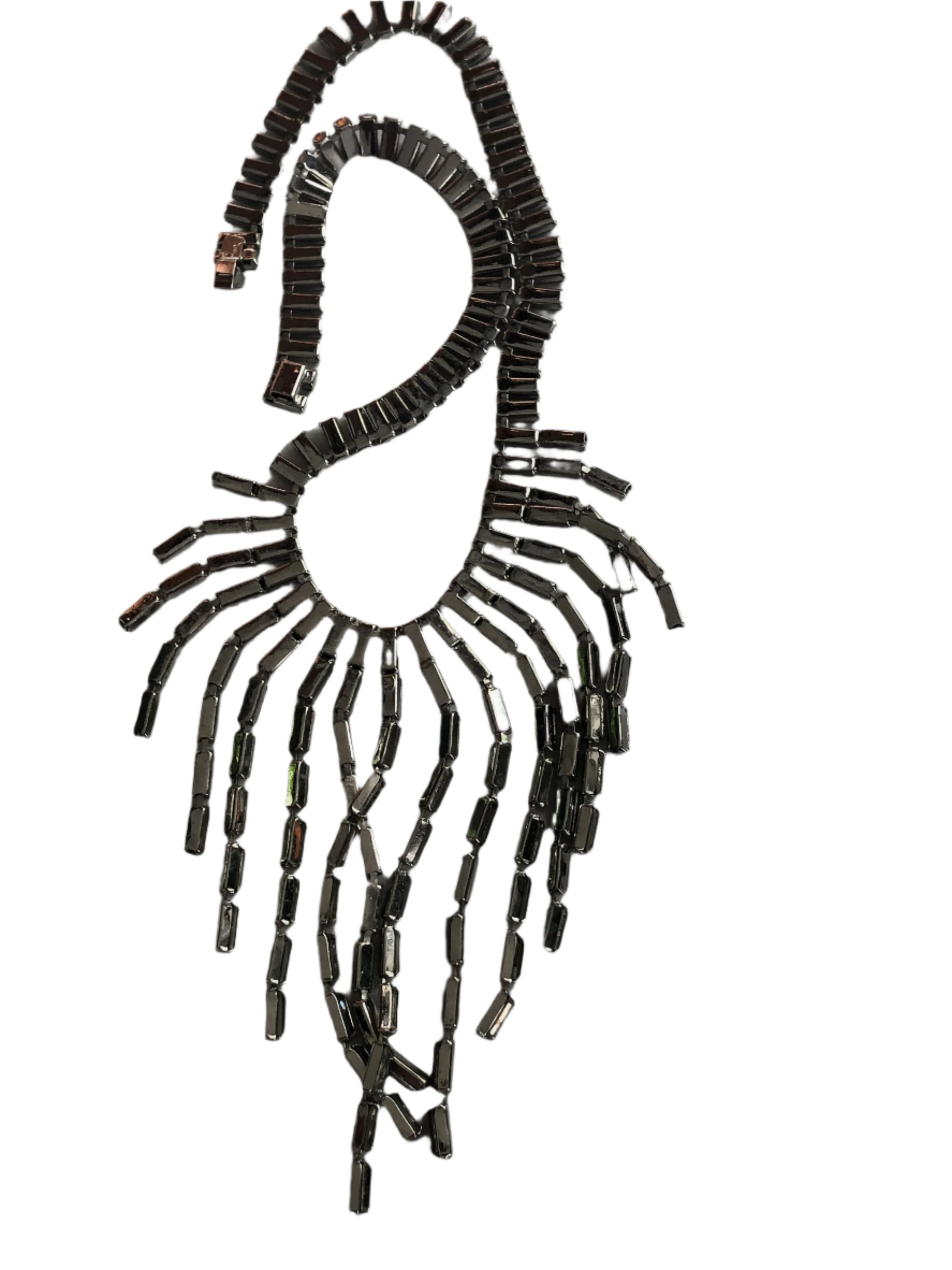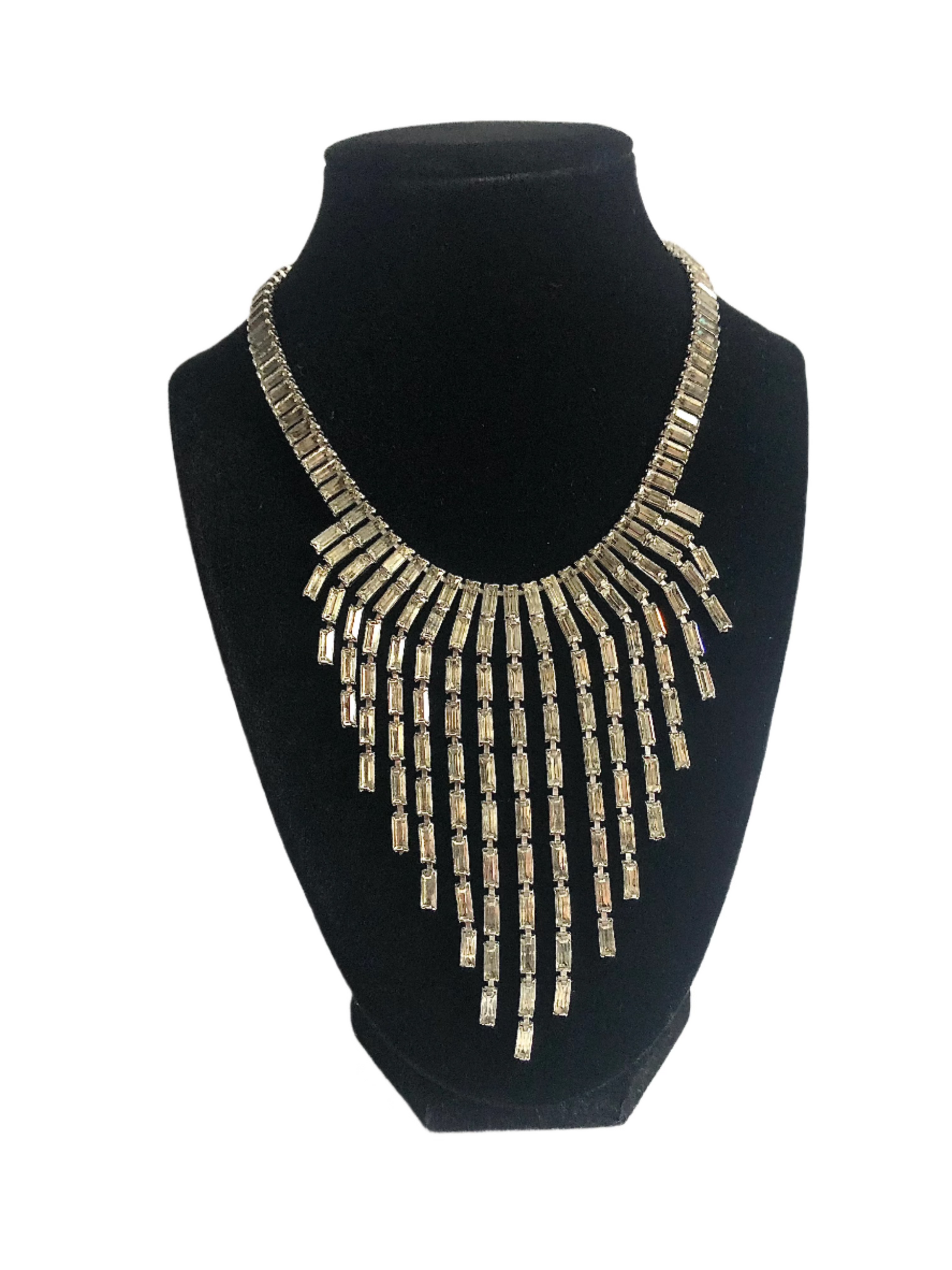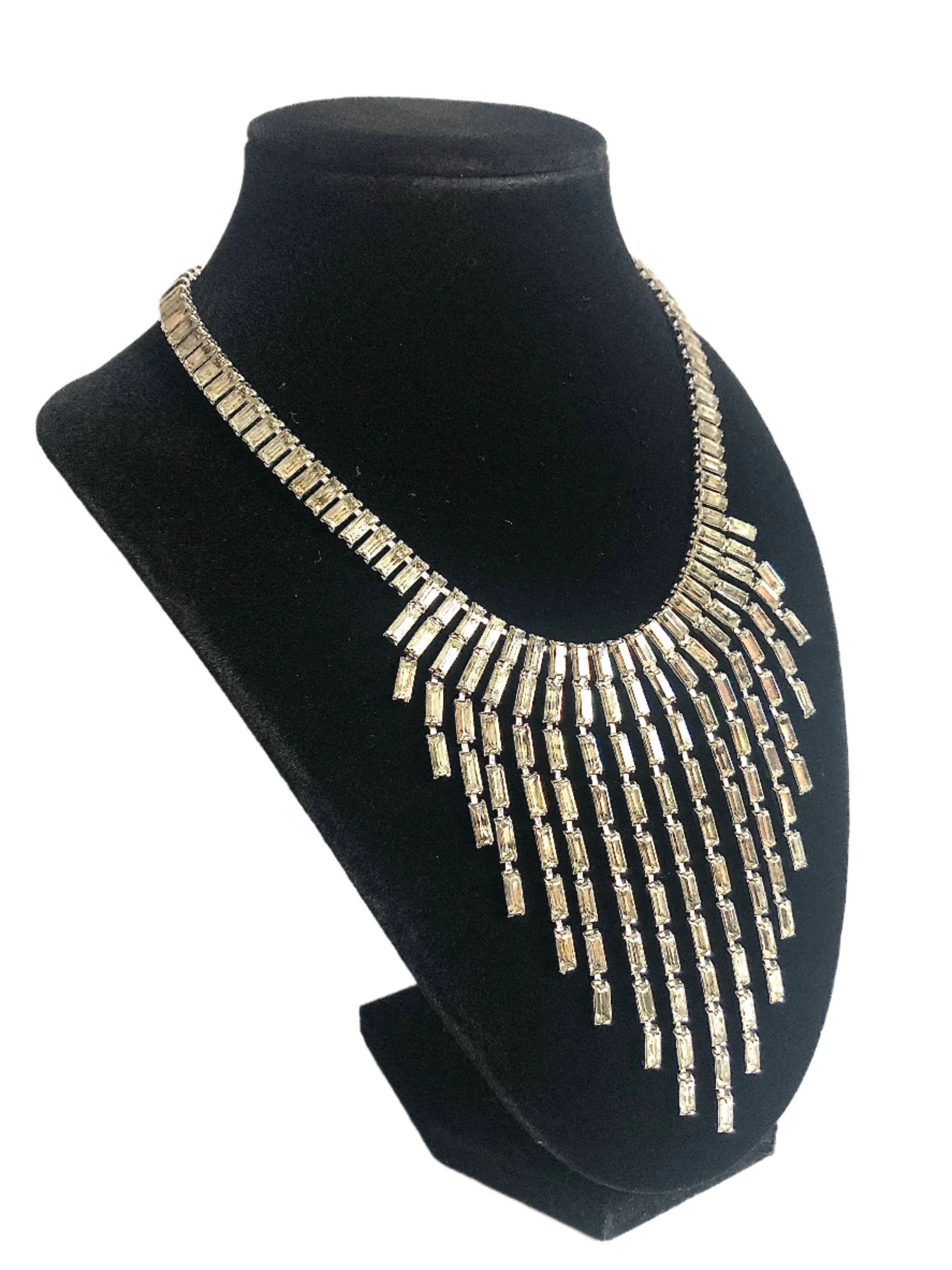- Notes: stunning waterfall necklace by Yves Saint Laurent, 70s / silver tone metal / decorated clear sparkling baquette rhinestone/ signed on the back logo